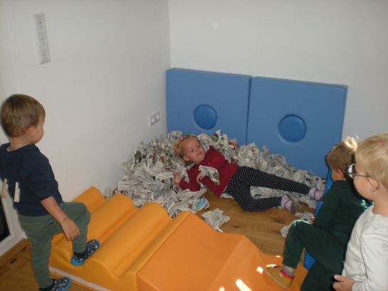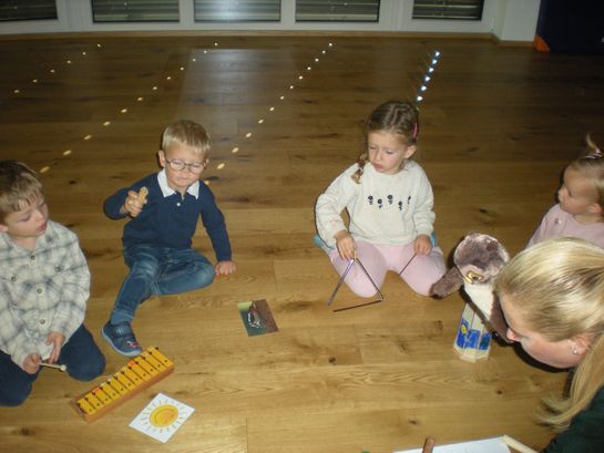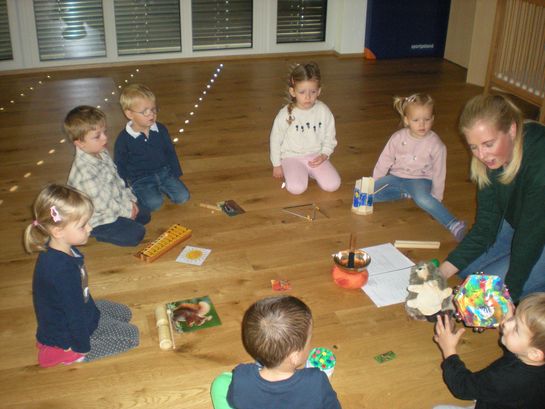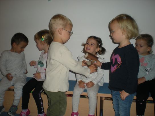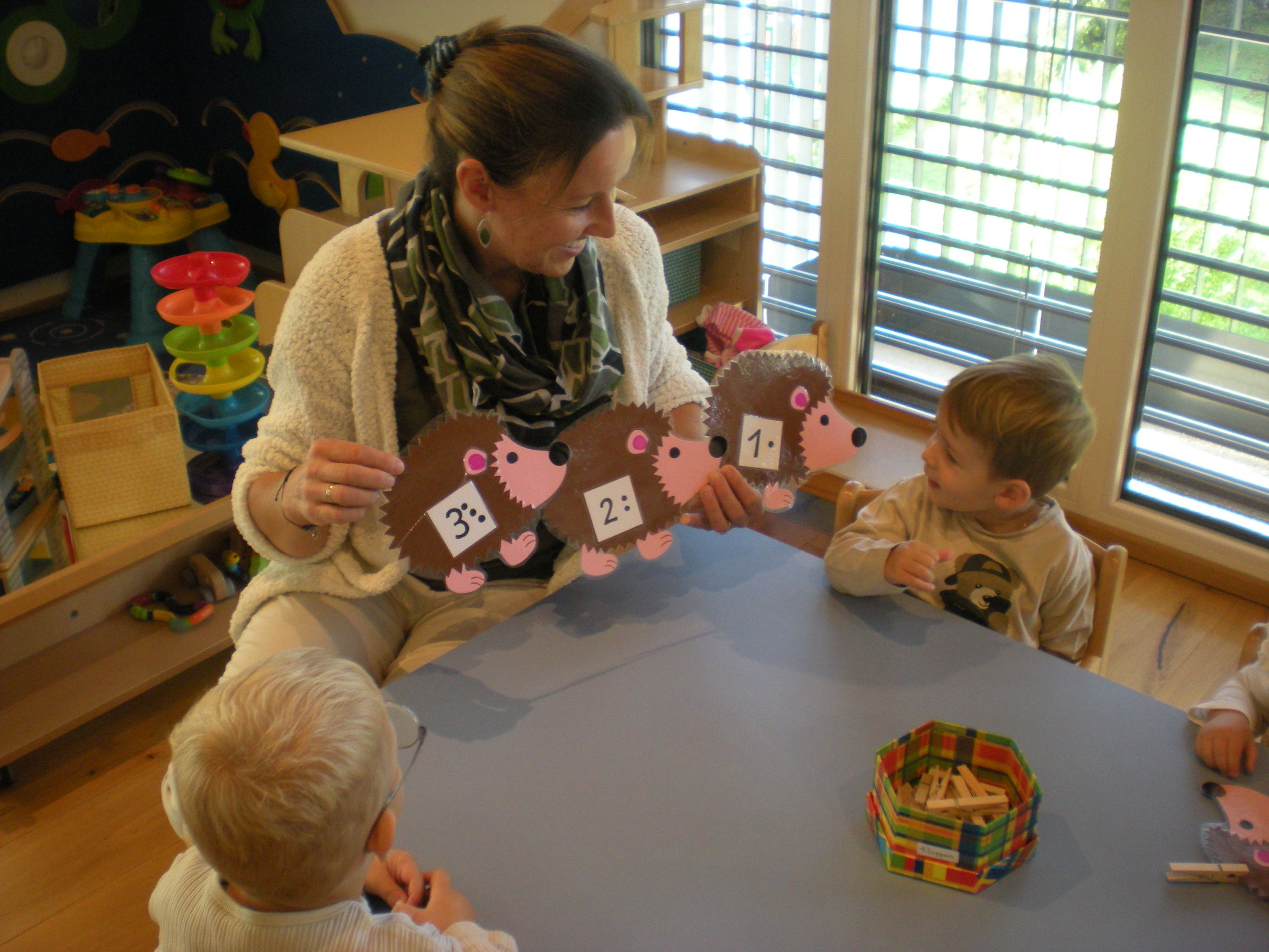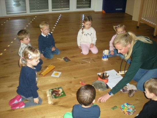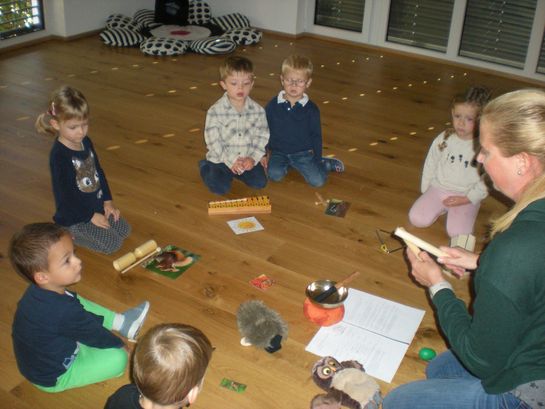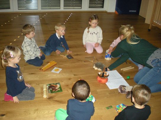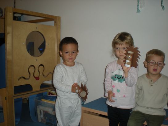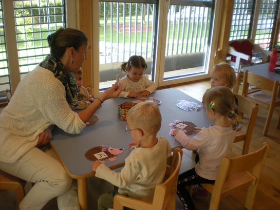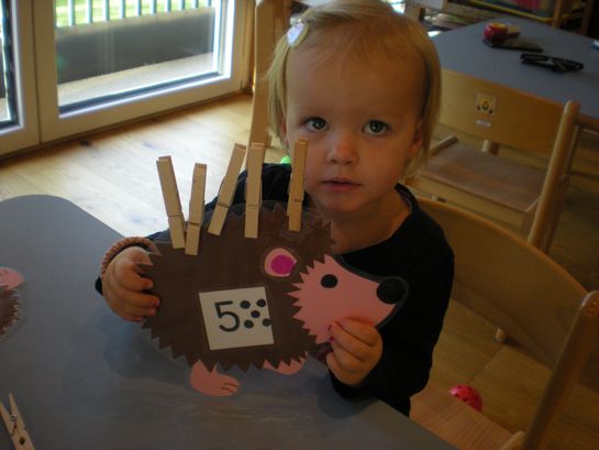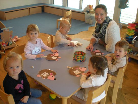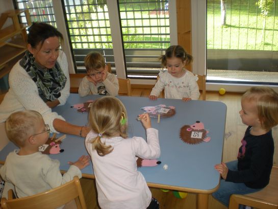 Spielerisch erlebten die Kinder viele Aktivitäten rund um dieses stachelige Tier. Die Kinder unternahmen beim Turnen einen "Igelspaziergang durch den Wald", sangen Lieder, erarbeiteten ein Lernspiel,spielten Fingerspiele, erfuhren viele Gesprächsimpulse und versuchten sich bei einer Feinmotorikarbeit.
