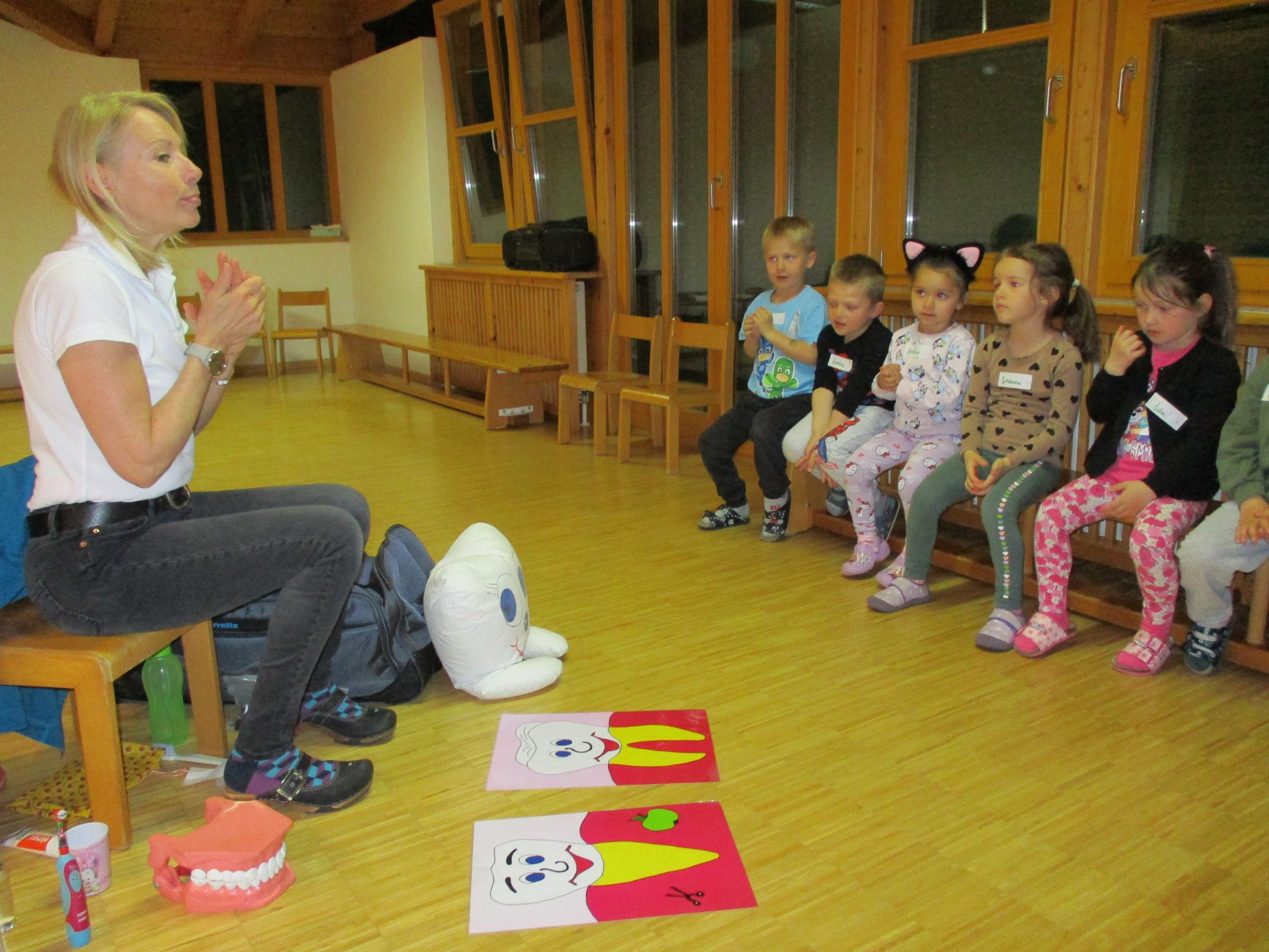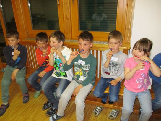 Gesundheitsexpertin Monja Ebenwaldner vermittelte den Kindern spielerisch viel Wissen, rund um die Kariesentstehung, zahngesunde Ernährung, regelmäßigen Zahnarztbesuchen und gab Tipps zum praktischen Zähneputzen.