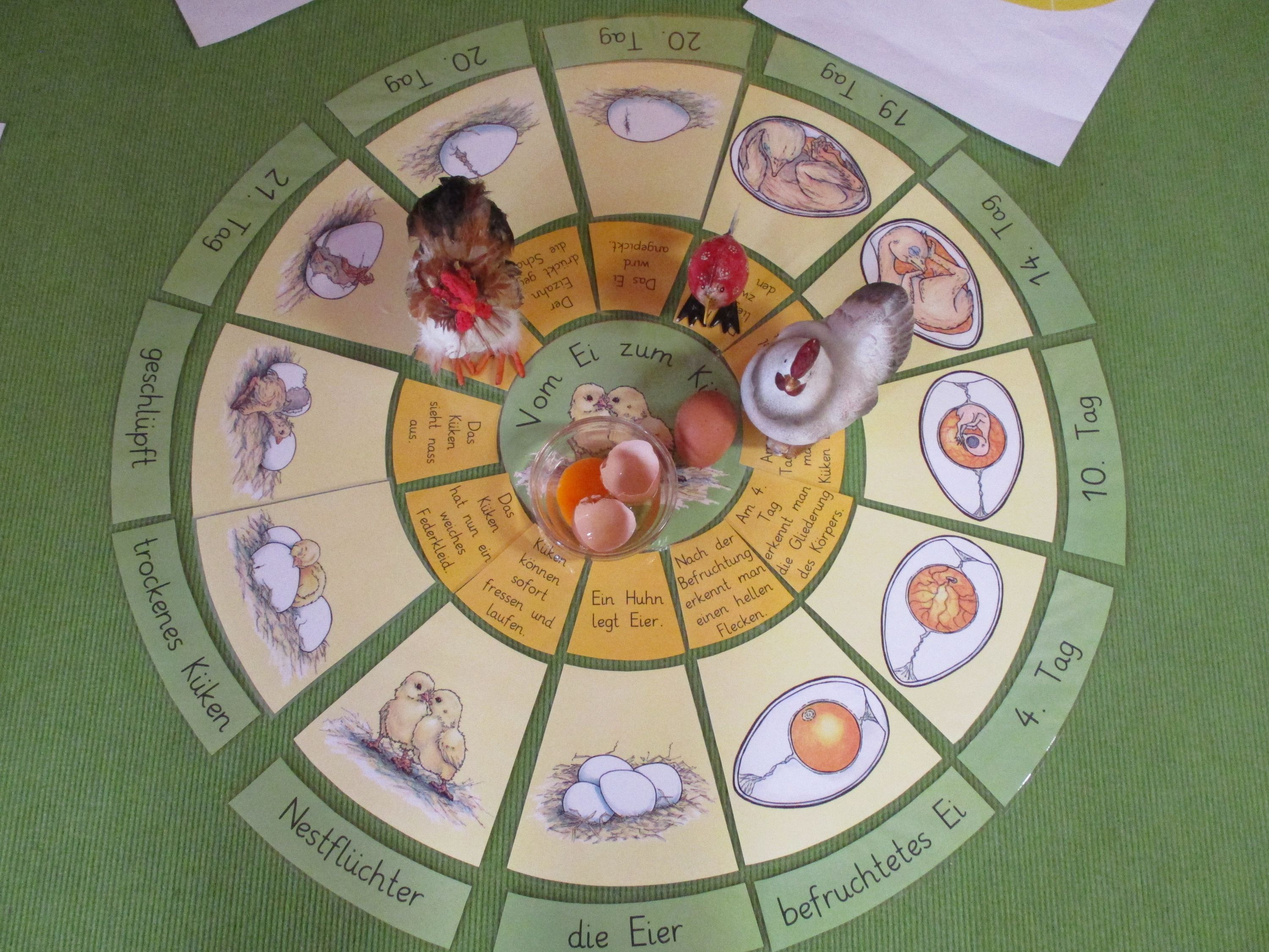 Die Kinder eigneten sich viel Wissen rund um die Hühnerfamilie an. Es wurden Eier hart gekocht und daraus Osterhasen gestaltet, die mit viel Genuss verzehrt wurden.