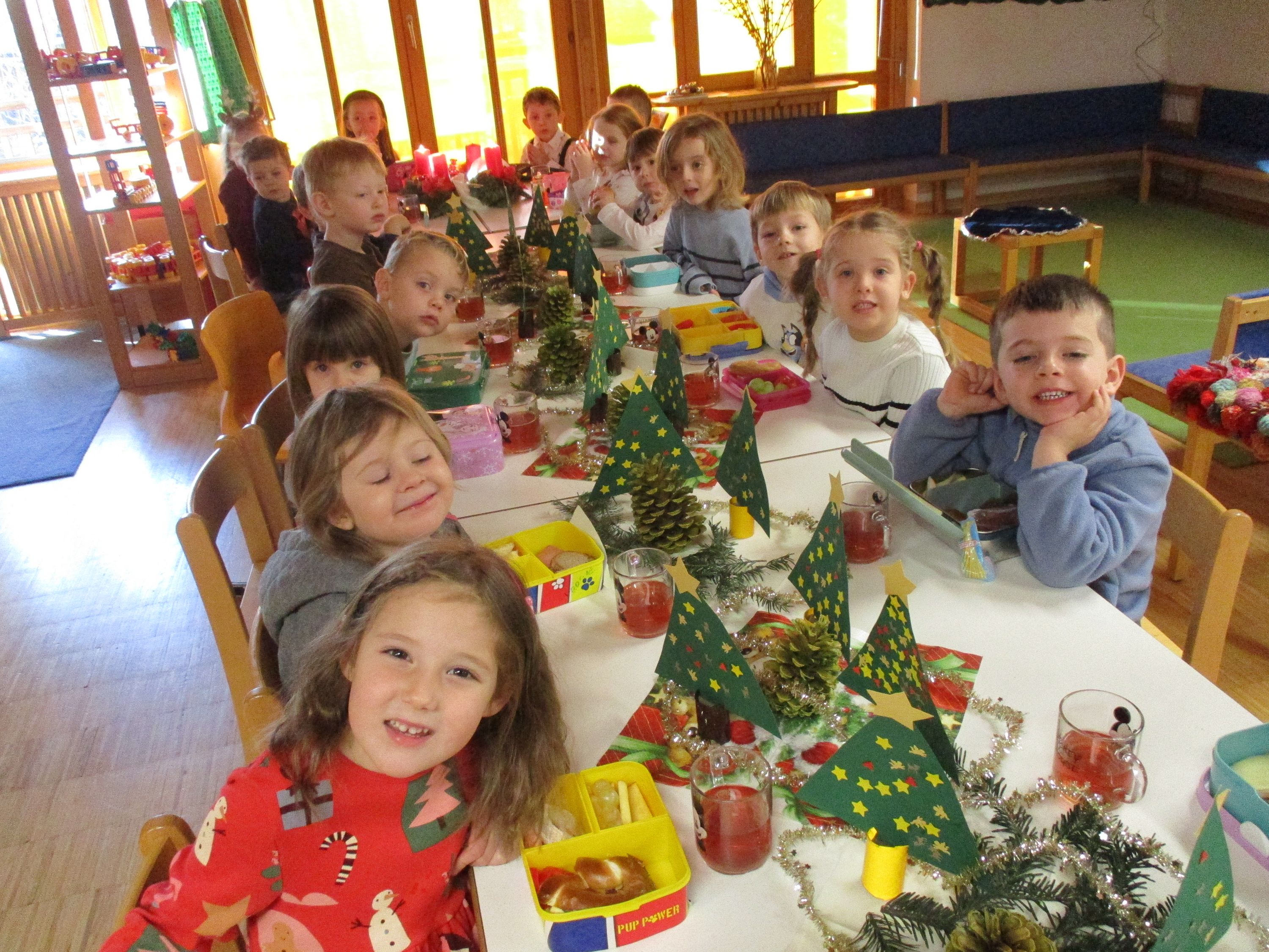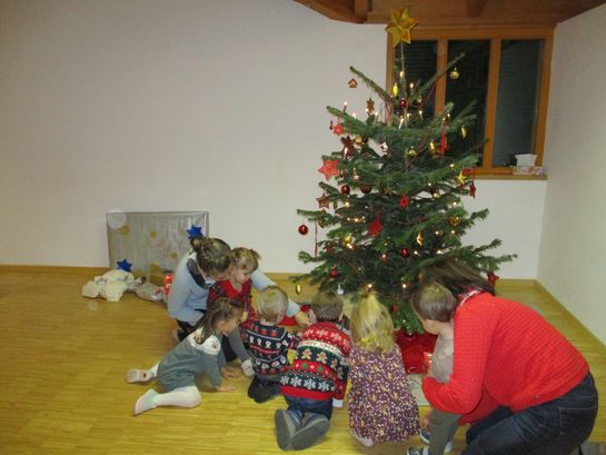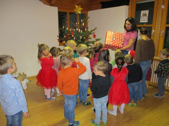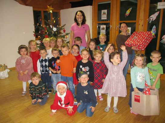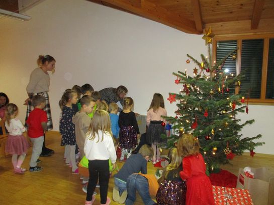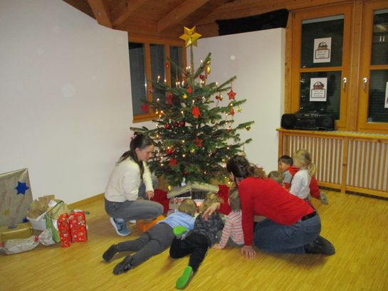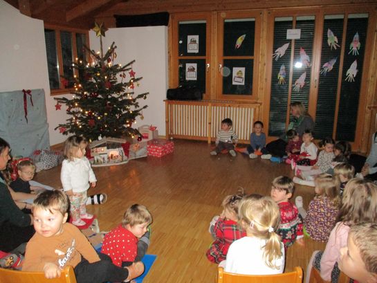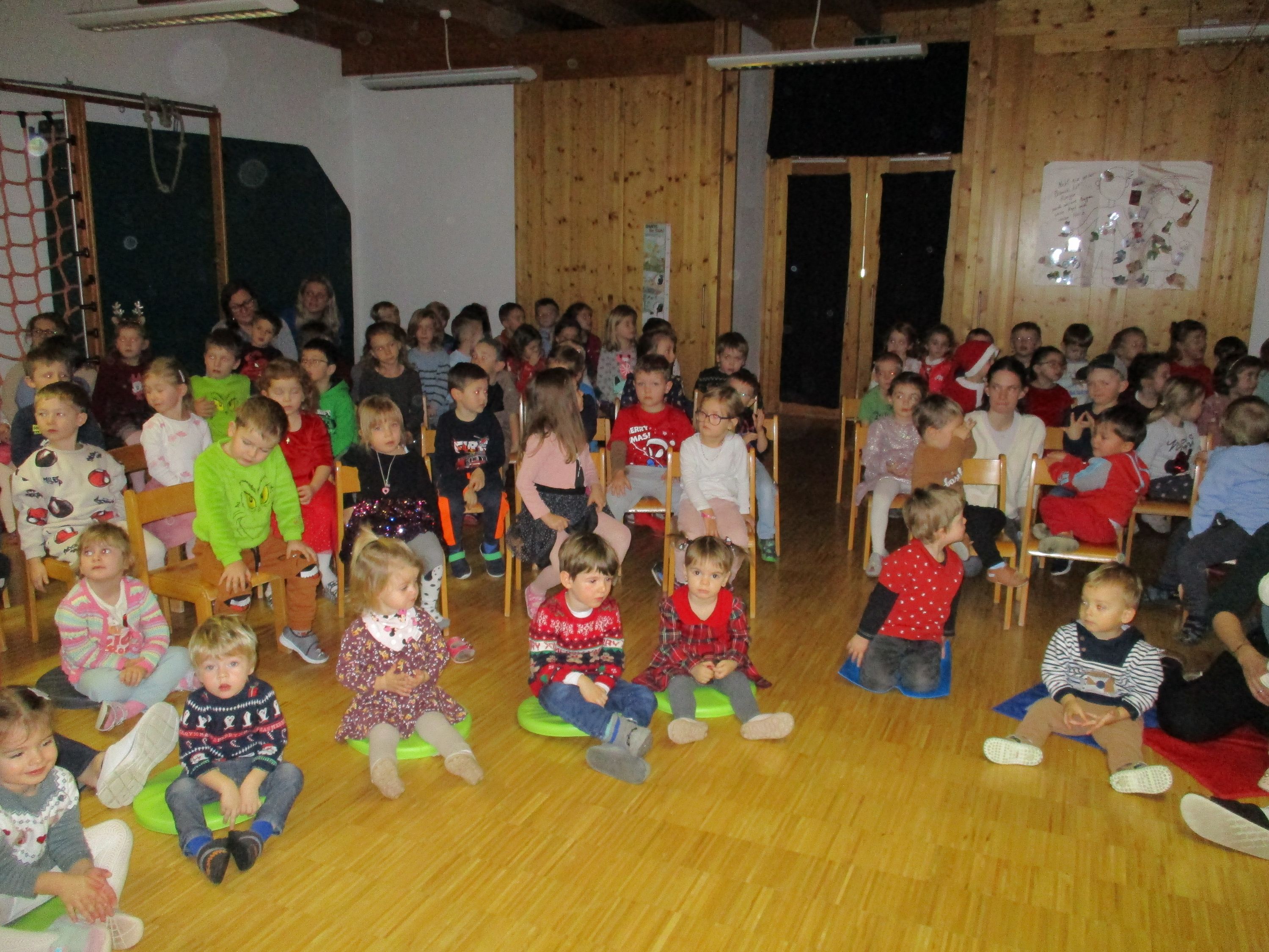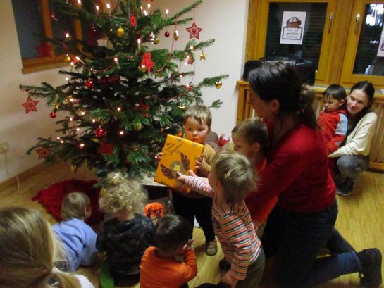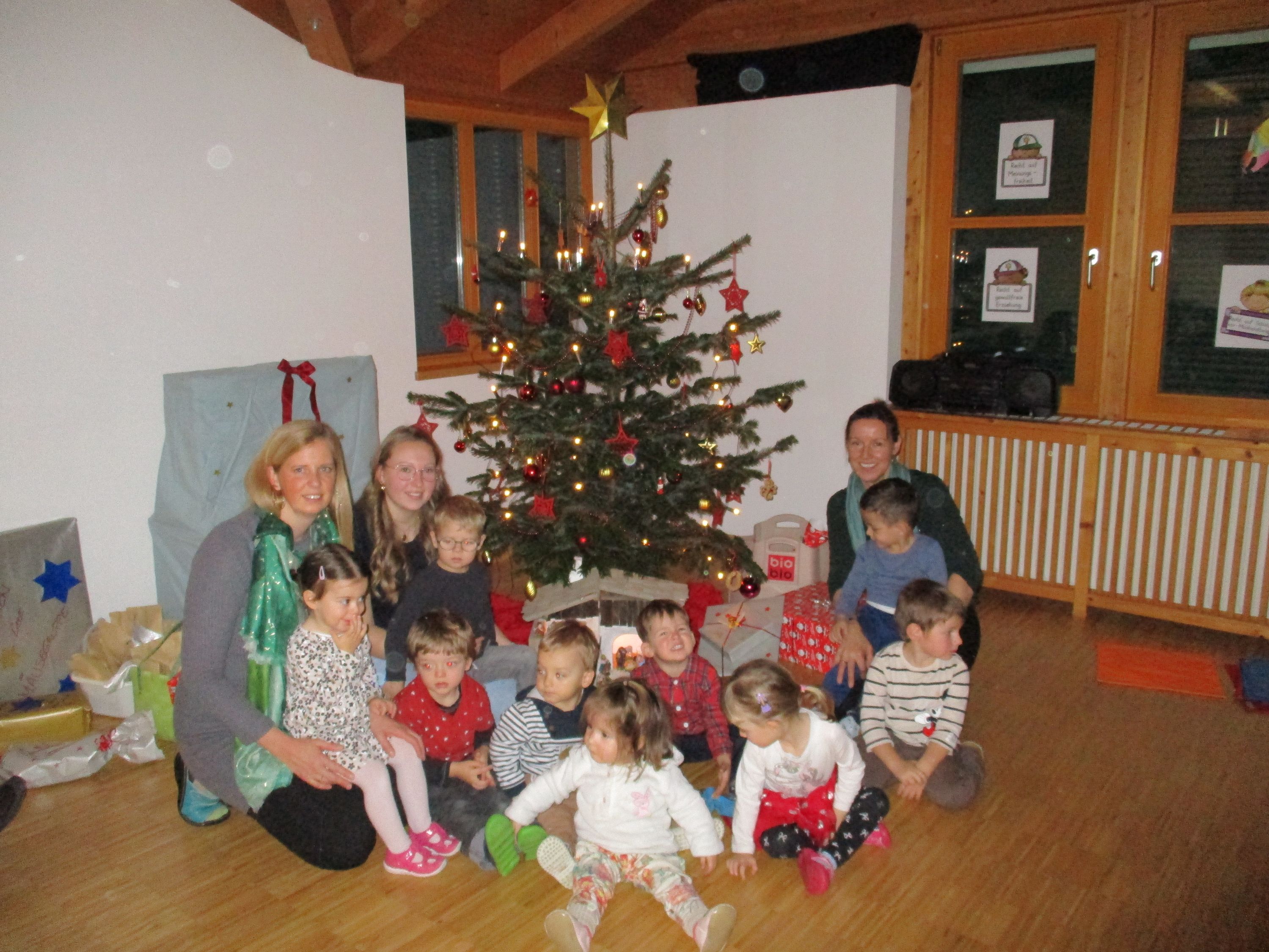Mit Spannung erlebten die Kinder das Fest, welches mit Christbaum und Geschenken für die Gruppen und Eltern stimmungsvoll gefeiert wurde.