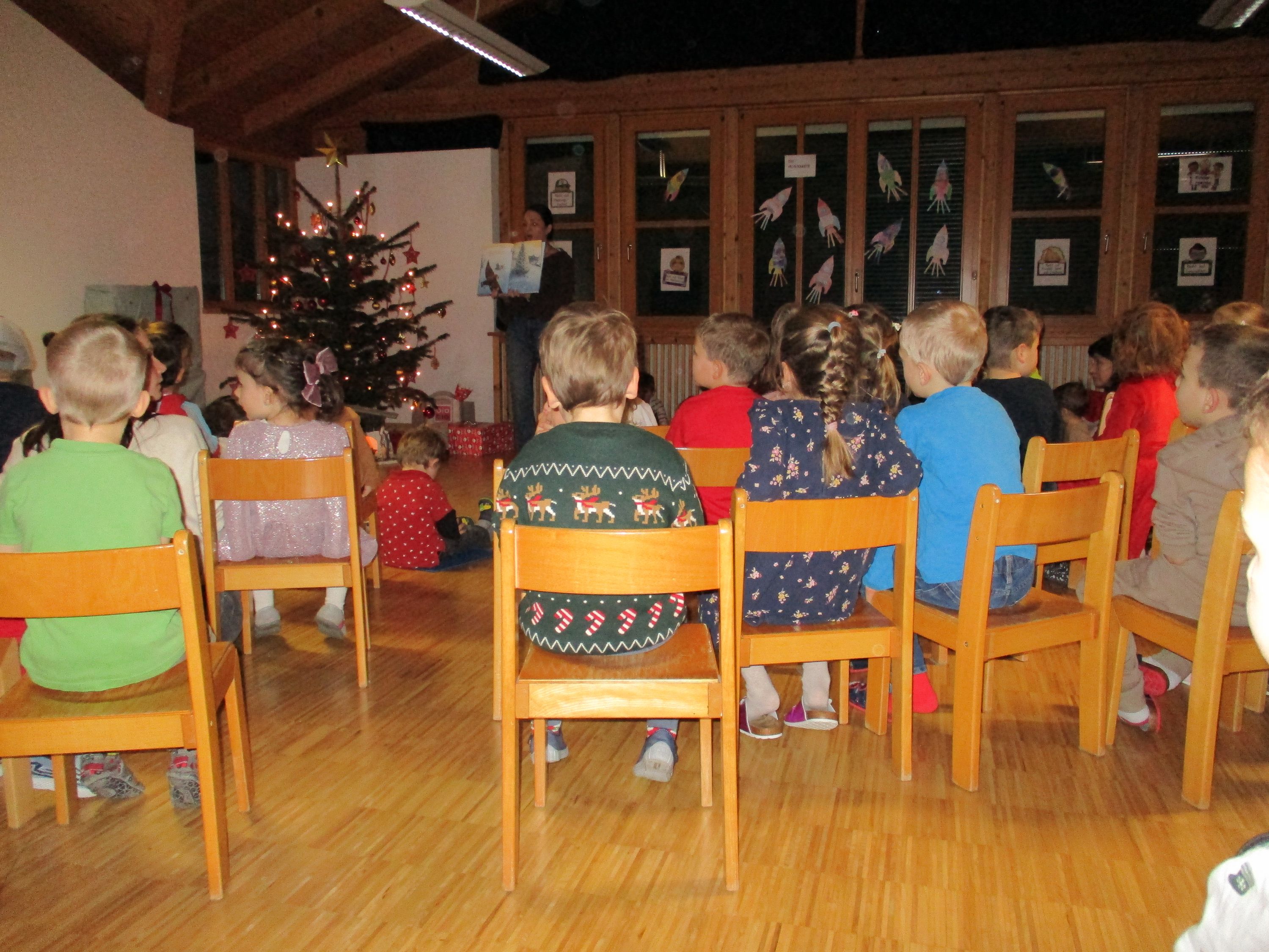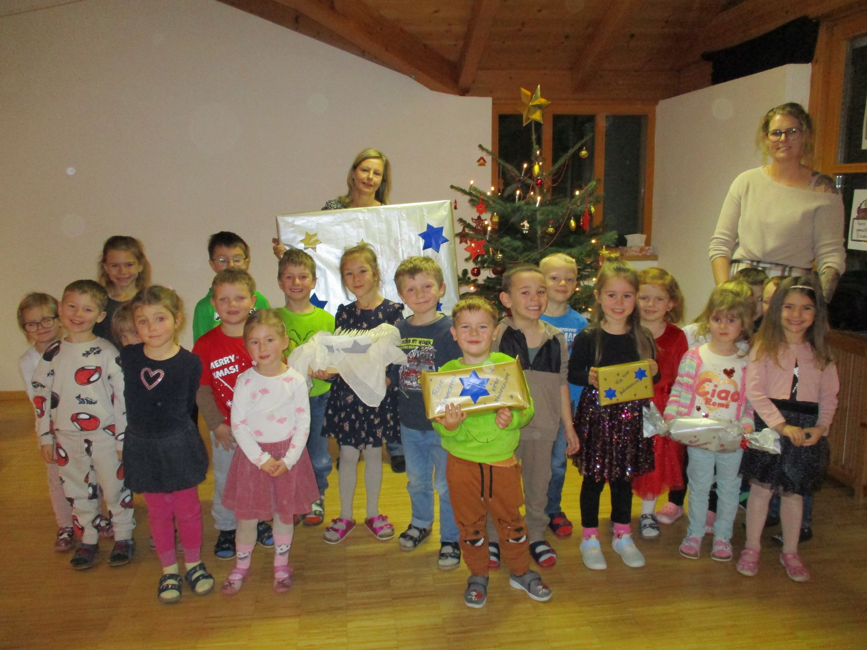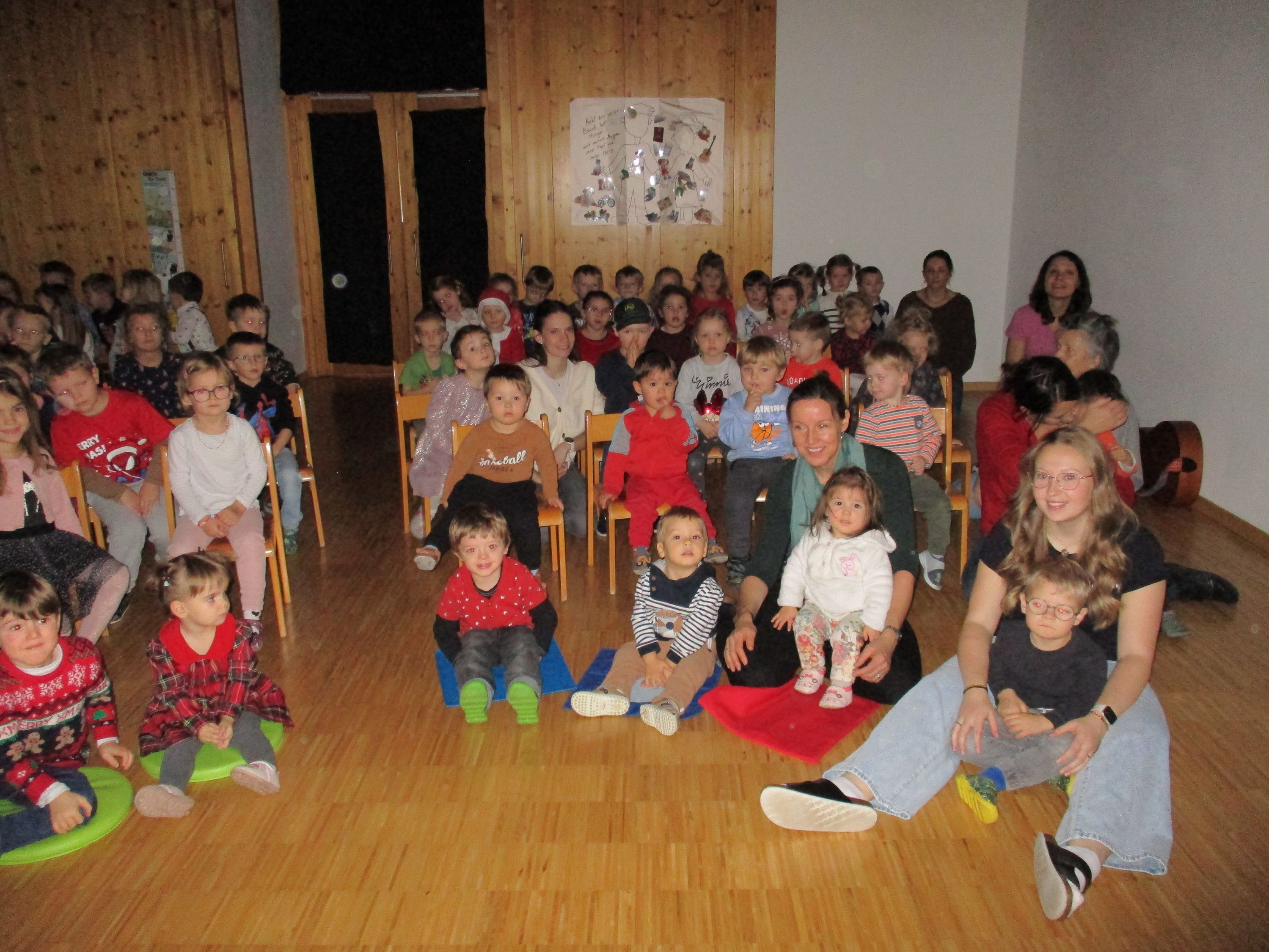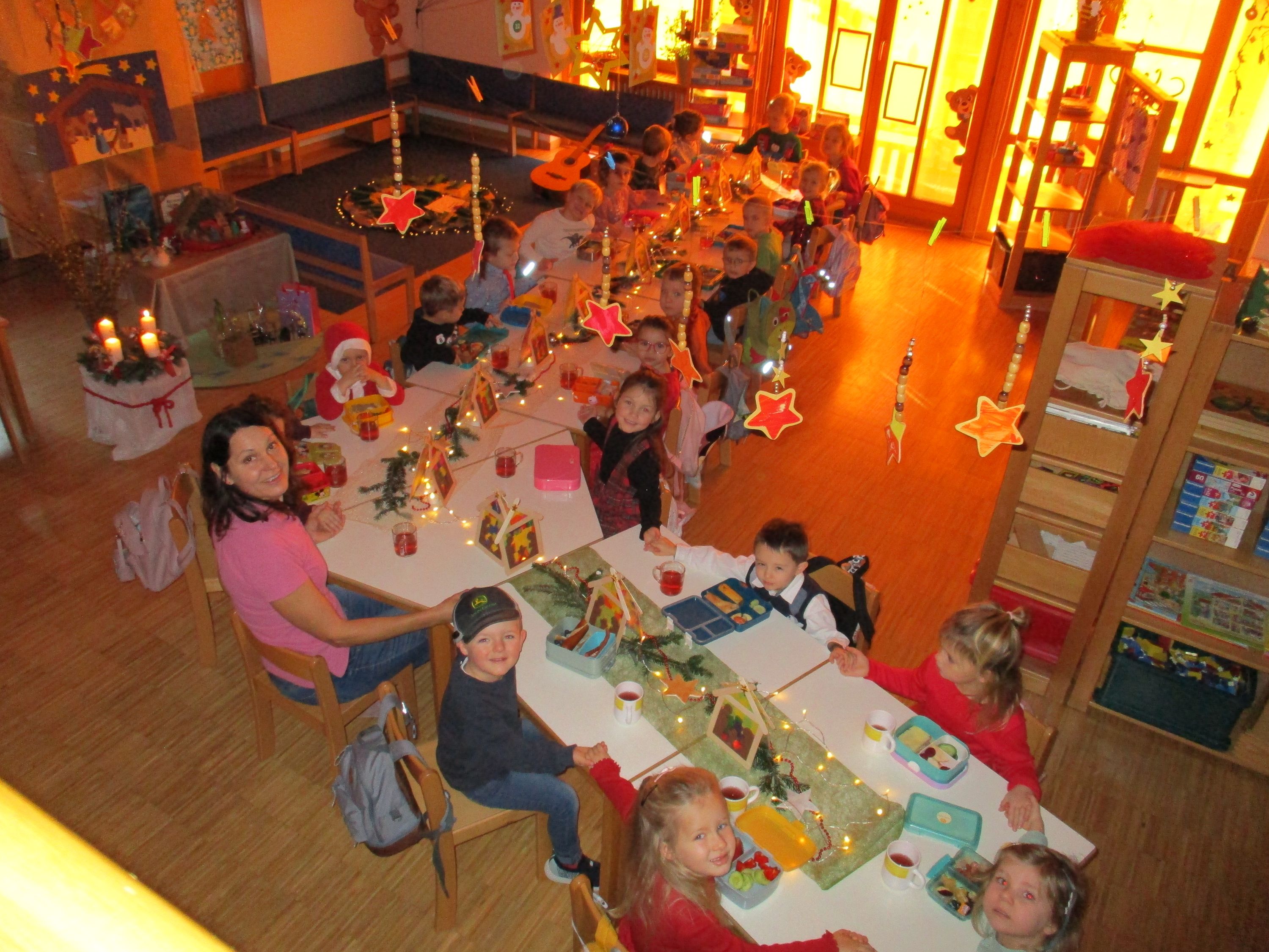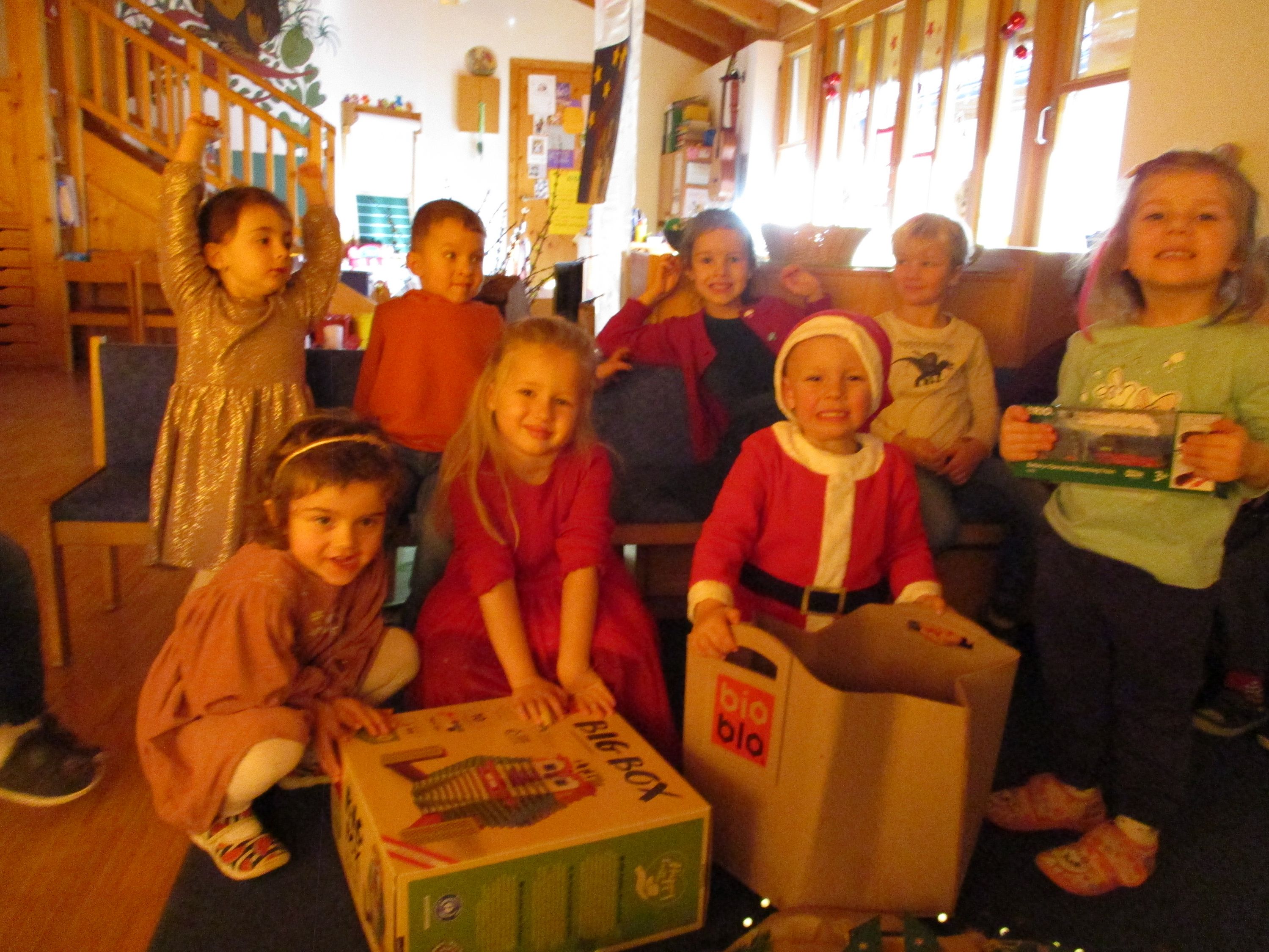 Mit Spannung erlebten die Kinder das Fest, welches mit Christbaum und Geschenken für die Gruppen und Eltern stimmungsvoll gefeiert wurde.