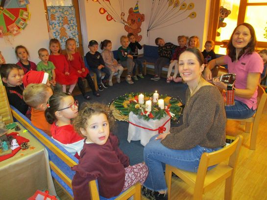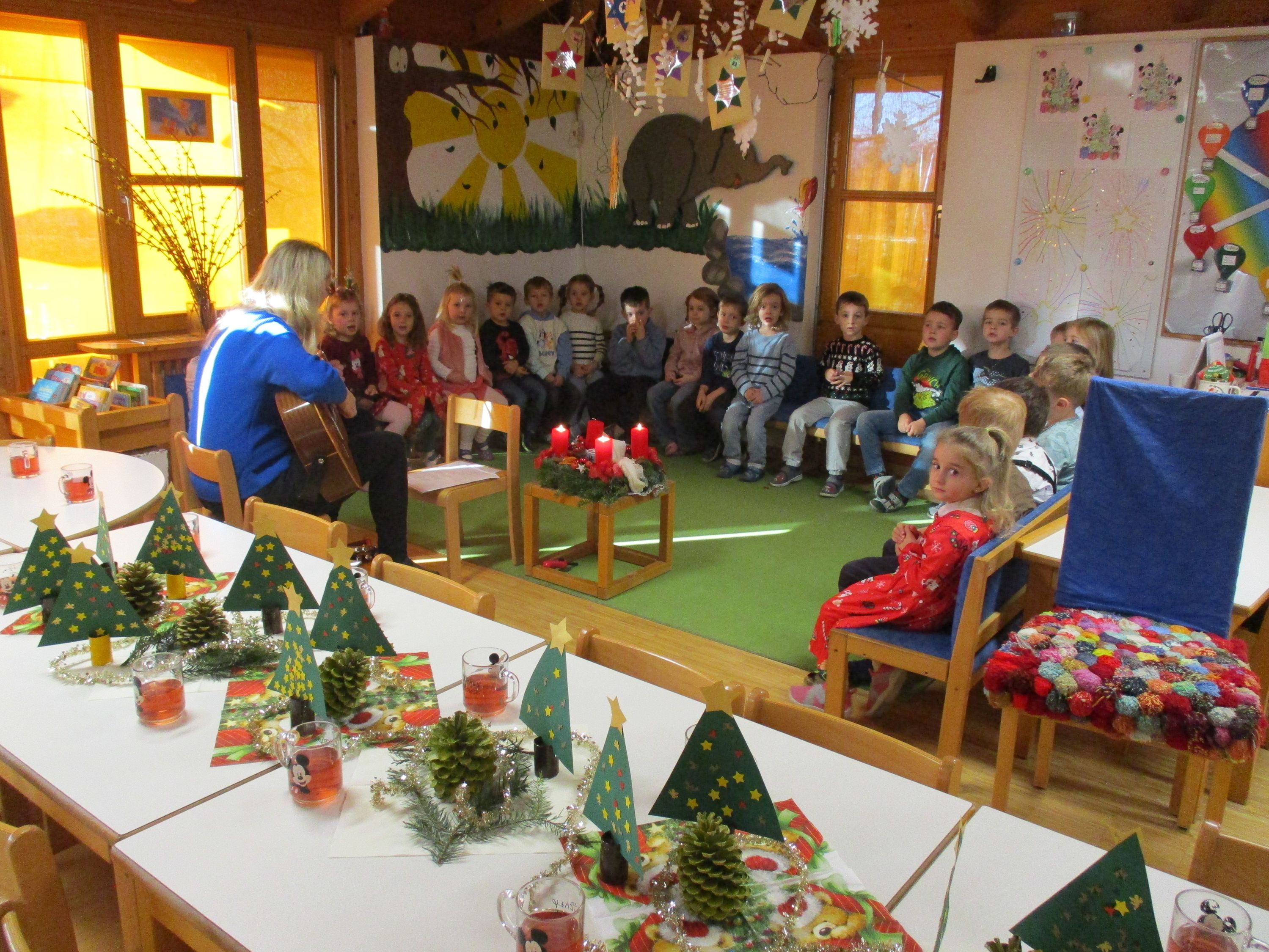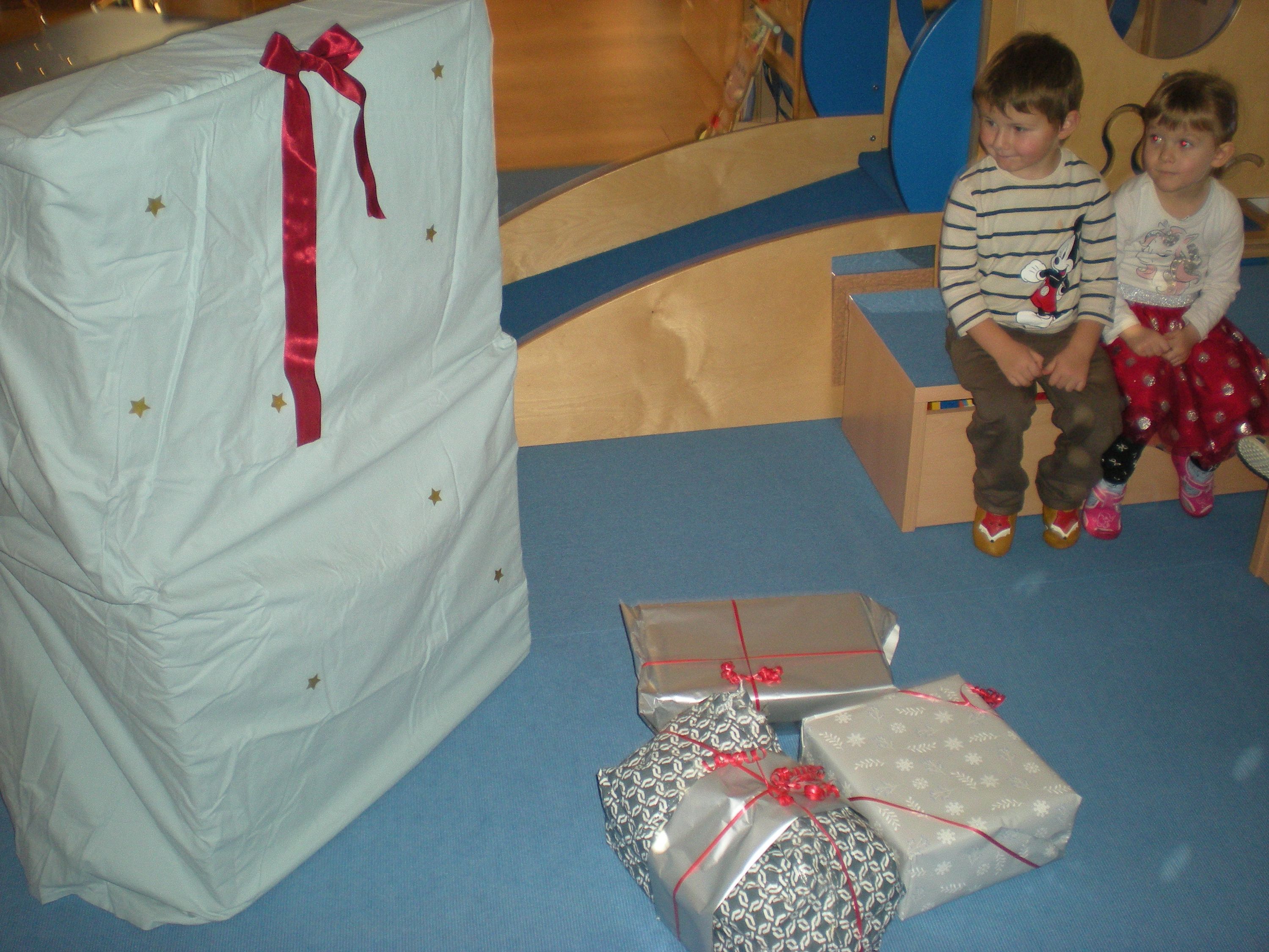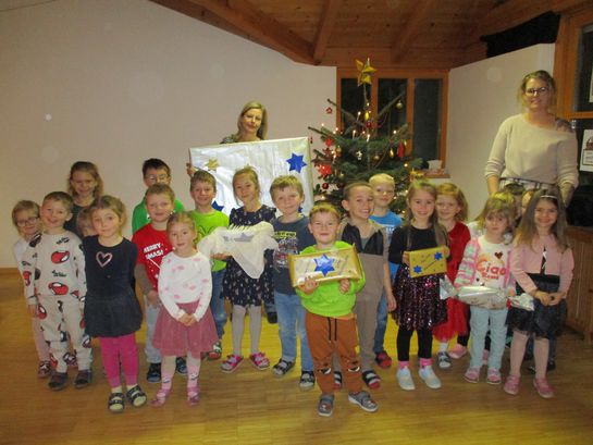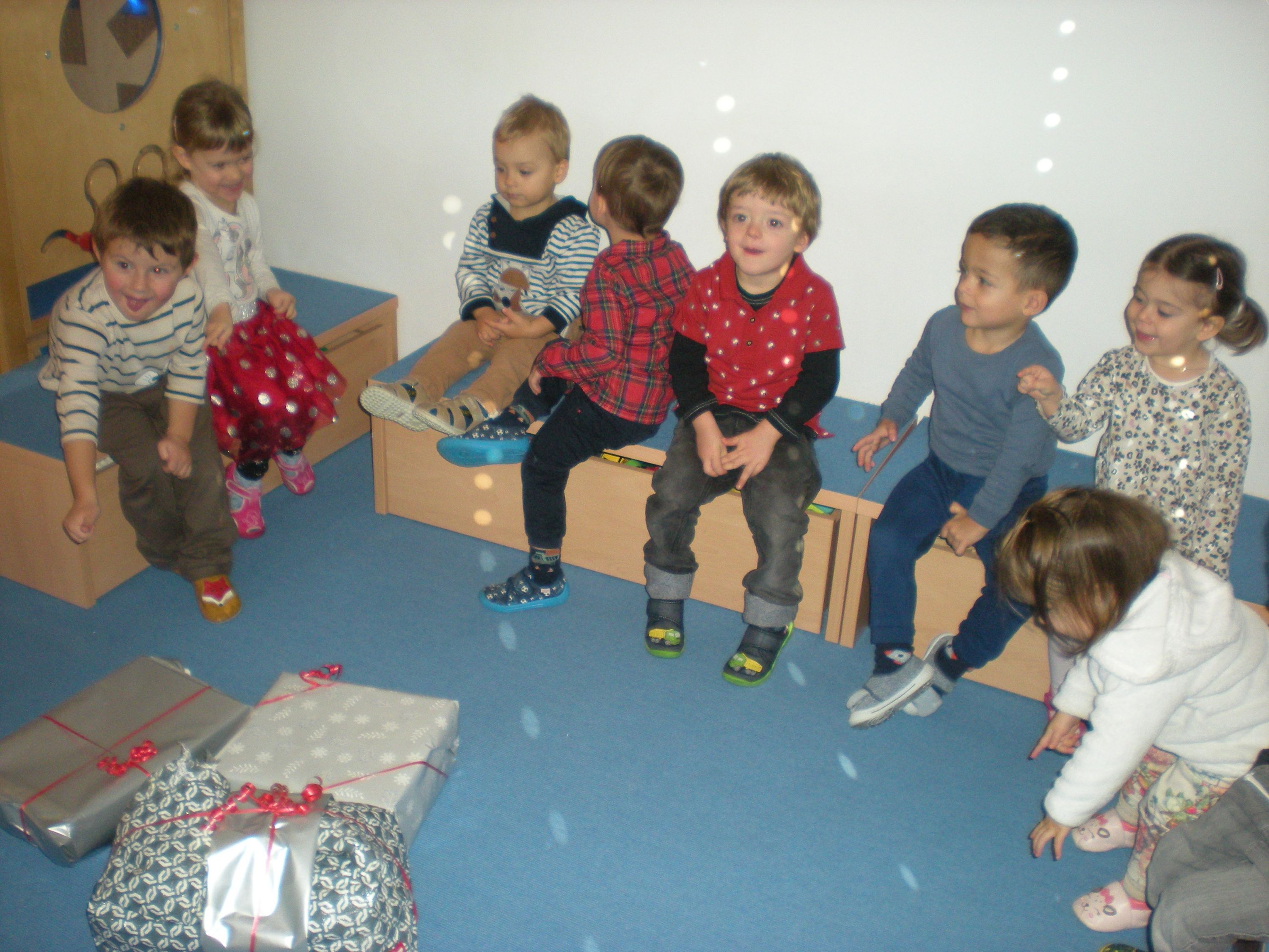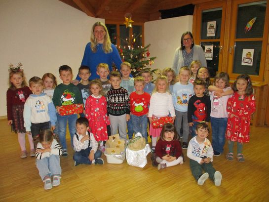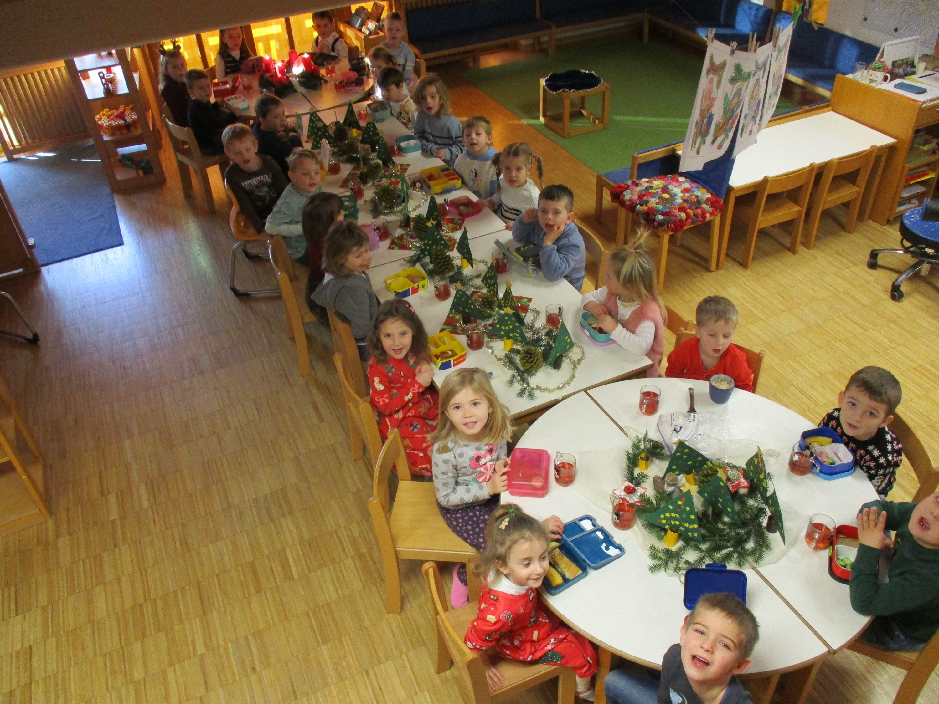 Mit Spannung erlebten die Kinder das Fest, welches mit Christbaum und Geschenken für die Gruppen und Eltern stimmungsvoll gefeiert wurde.