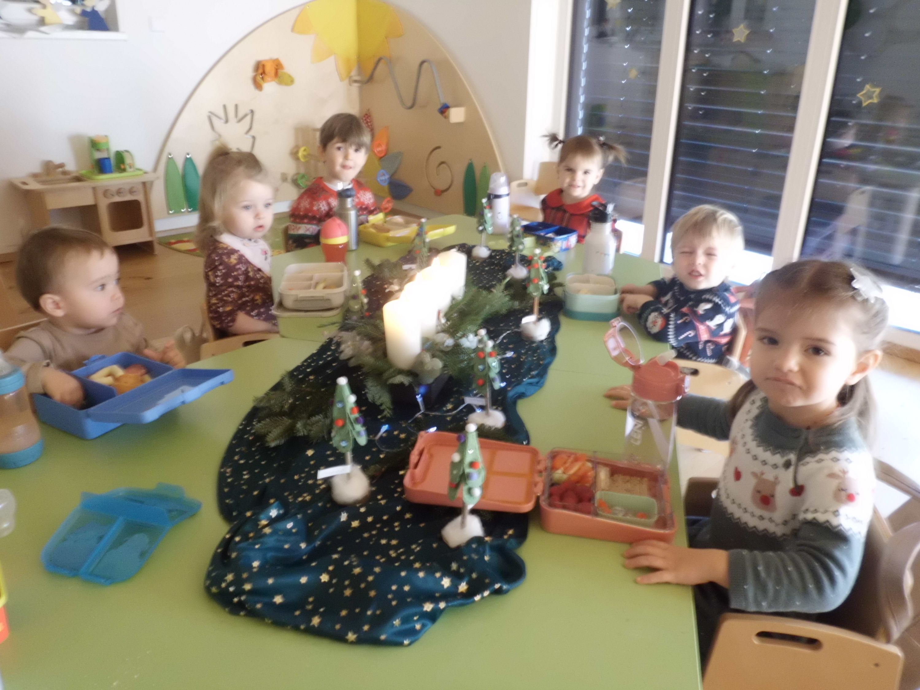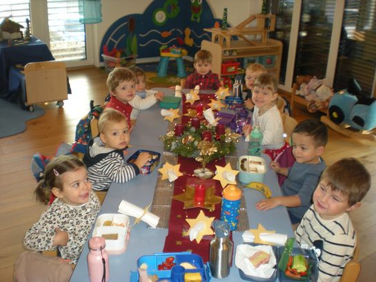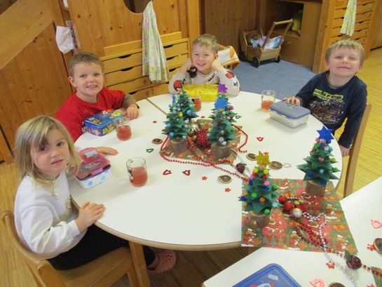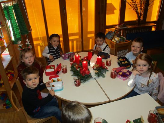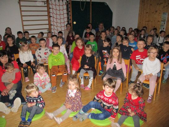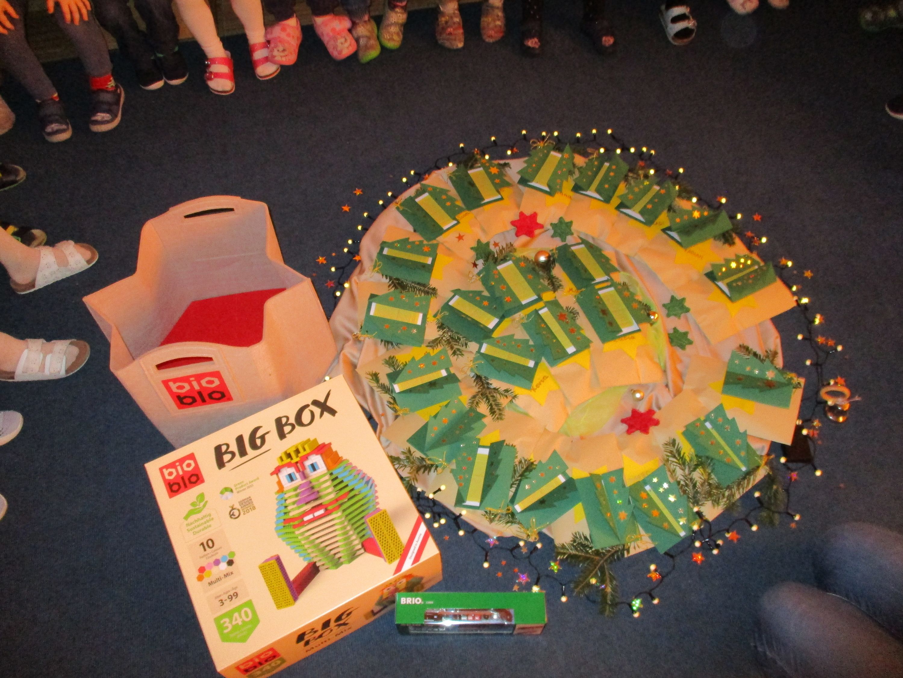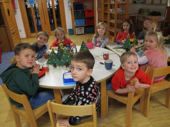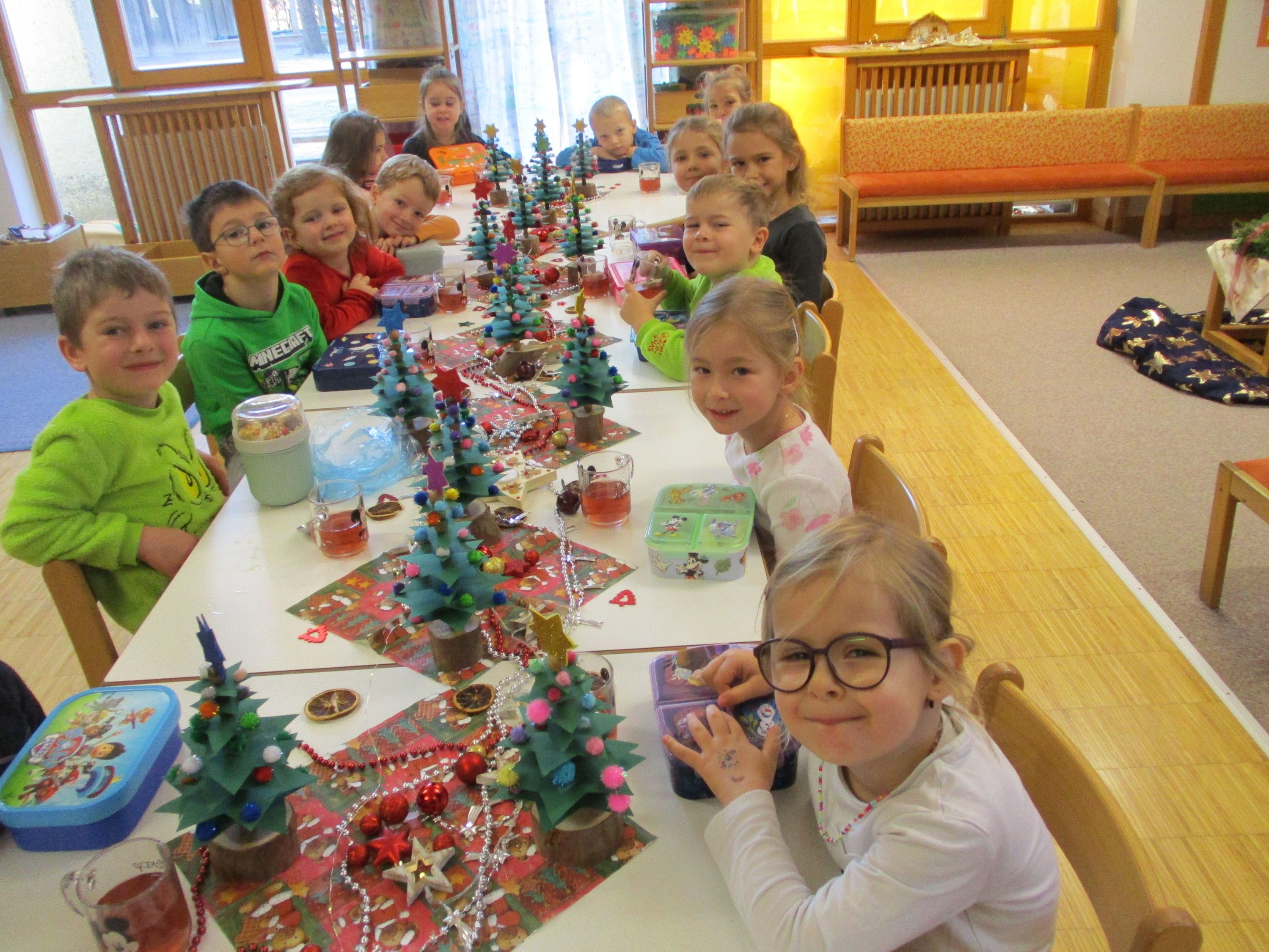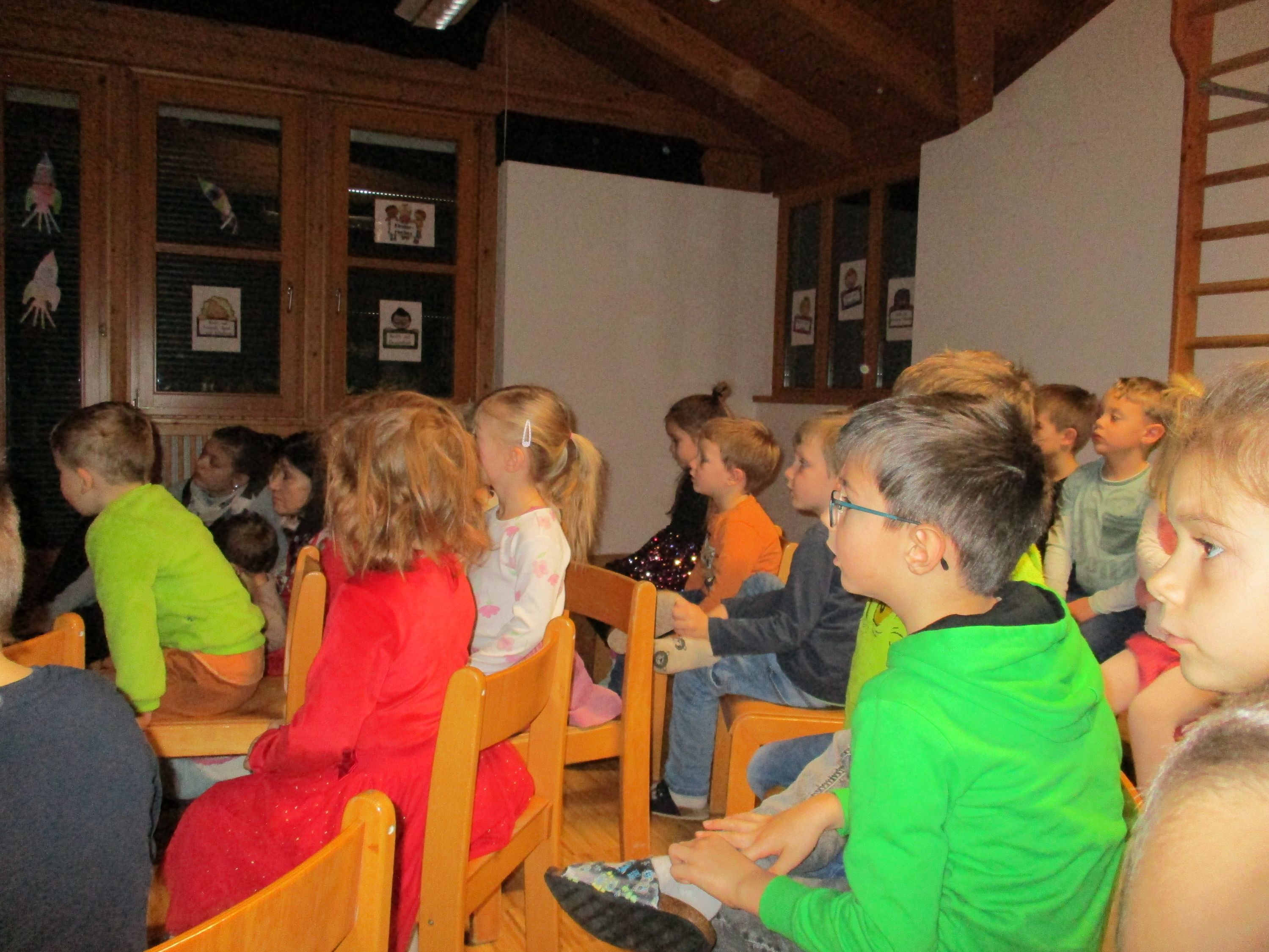 Mit Spannung erlebten die Kinder das Fest, welches mit Christbaum und Geschenken für die Gruppen und Eltern stimmungsvoll gefeiert wurde.