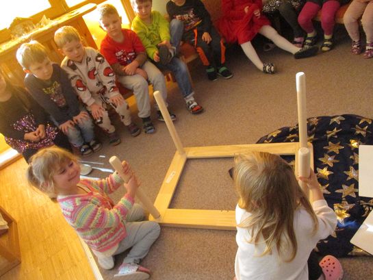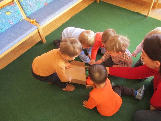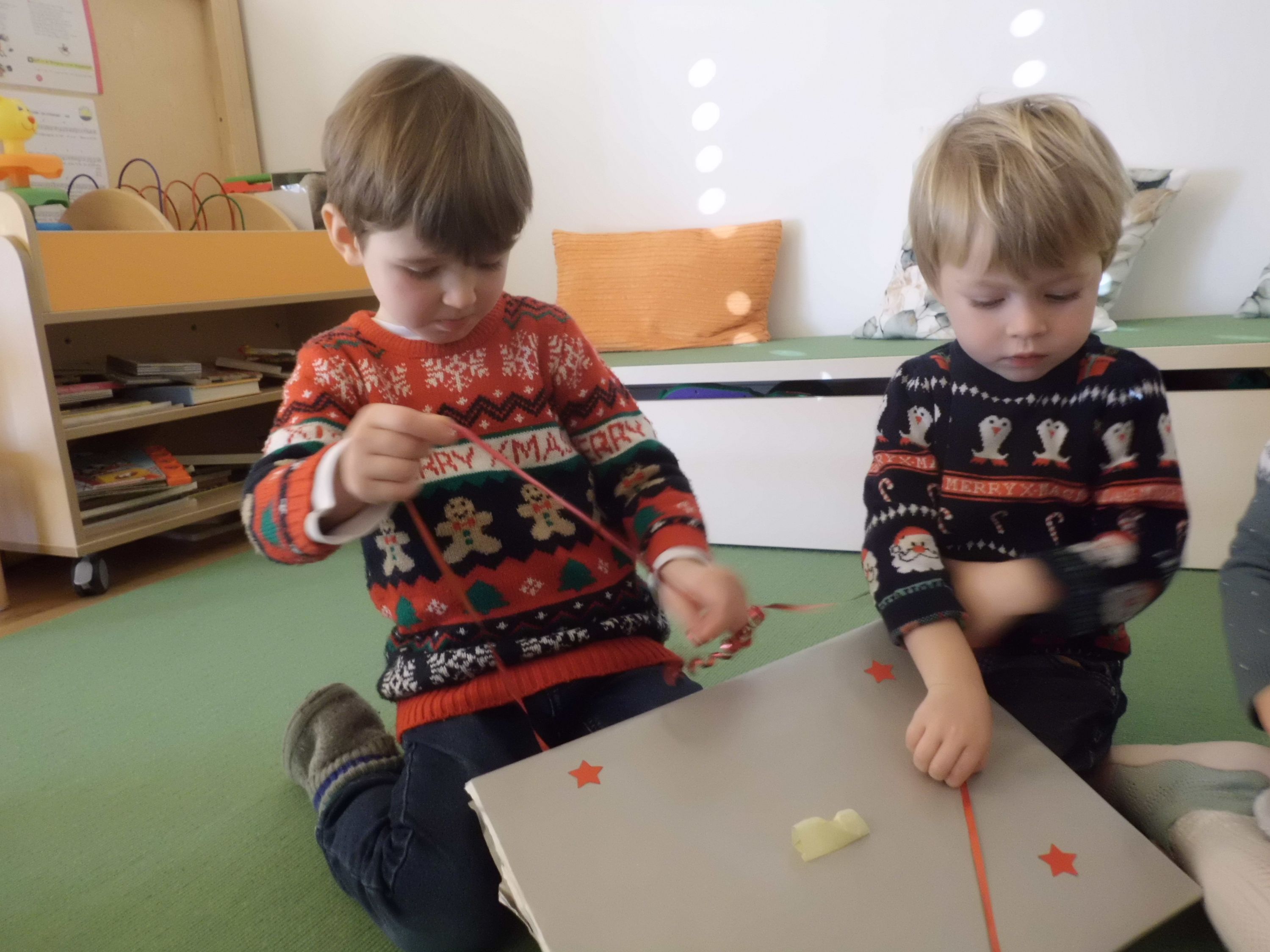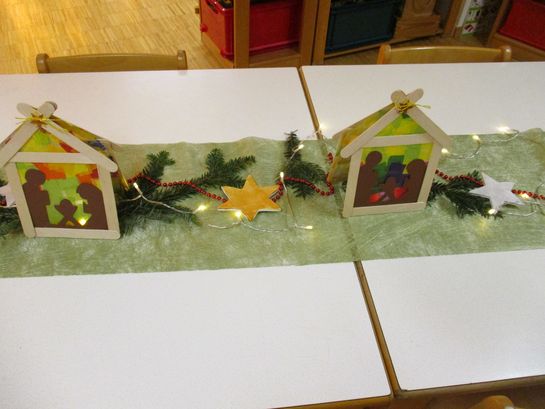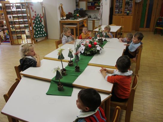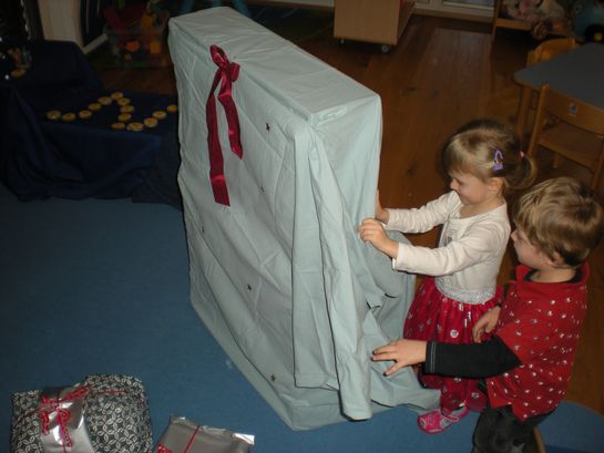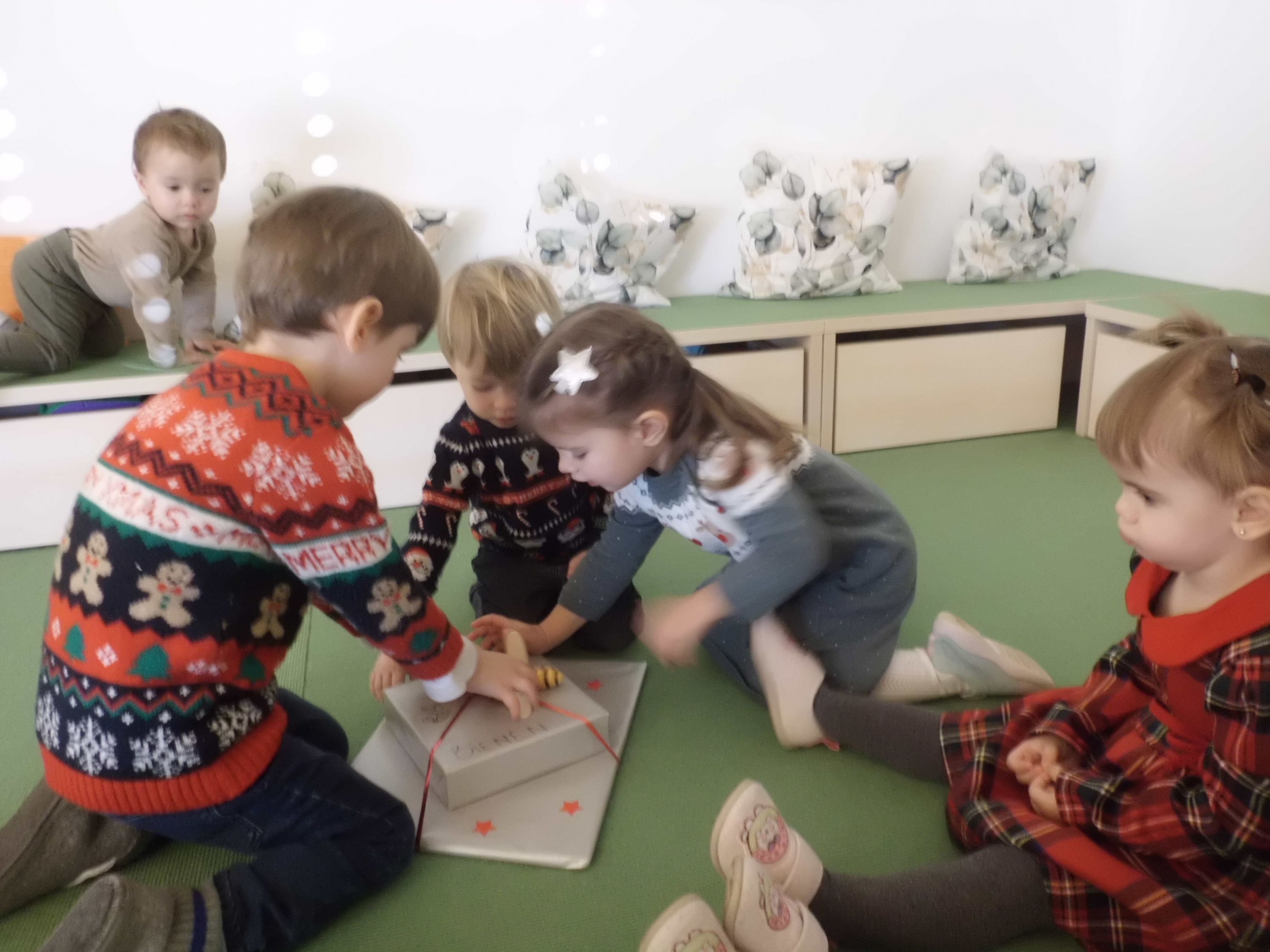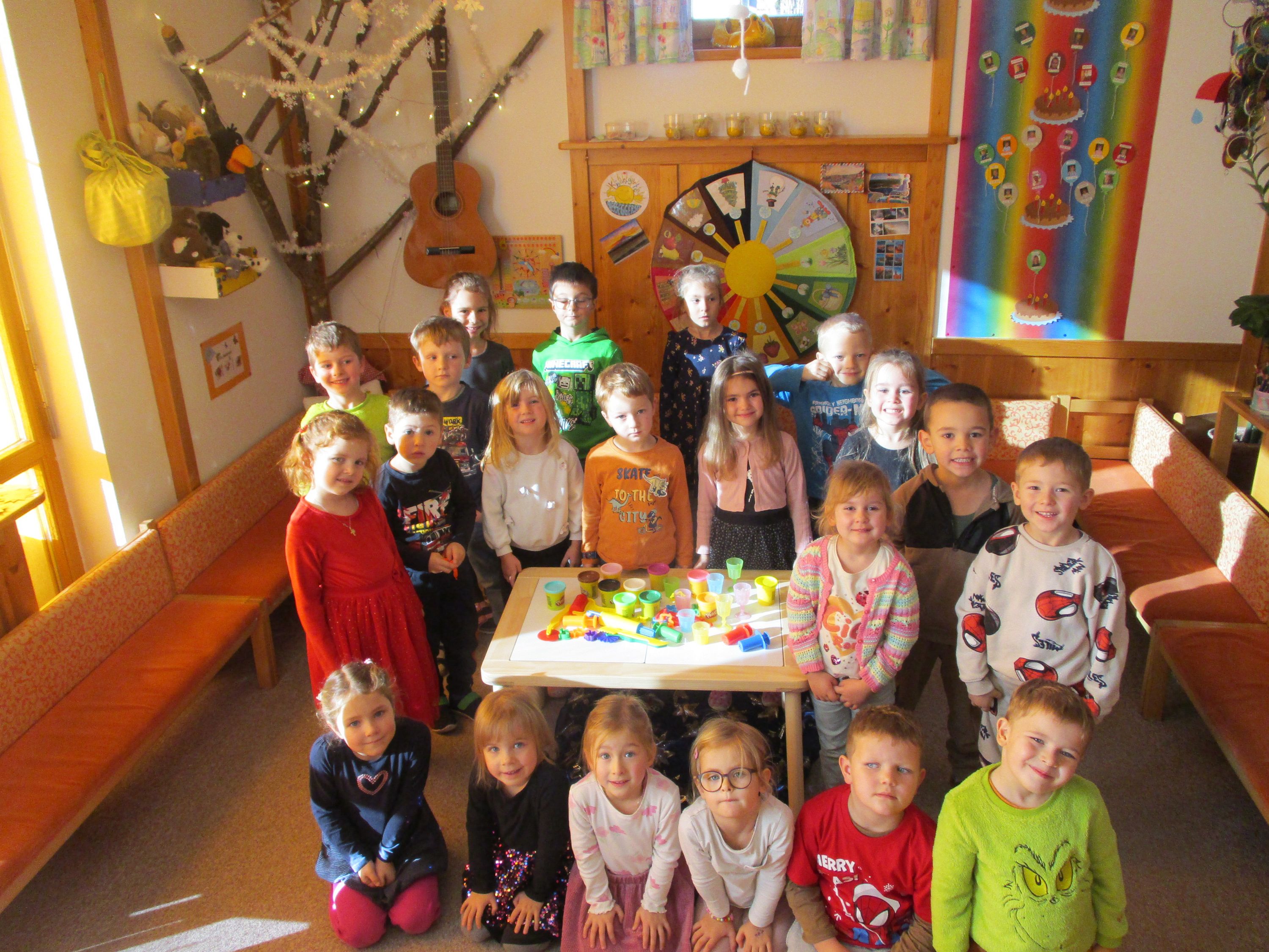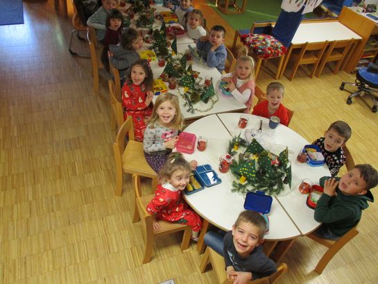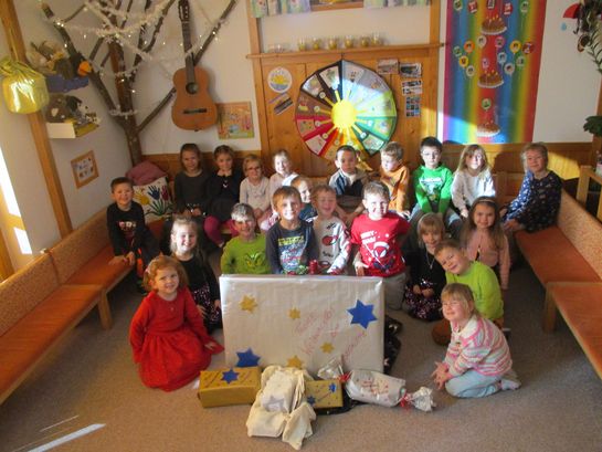 Mit Spannung erlebten die Kinder das Fest, welches mit Christbaum und Geschenken für die Gruppen und Eltern stimmungsvoll gefeiert wurde.