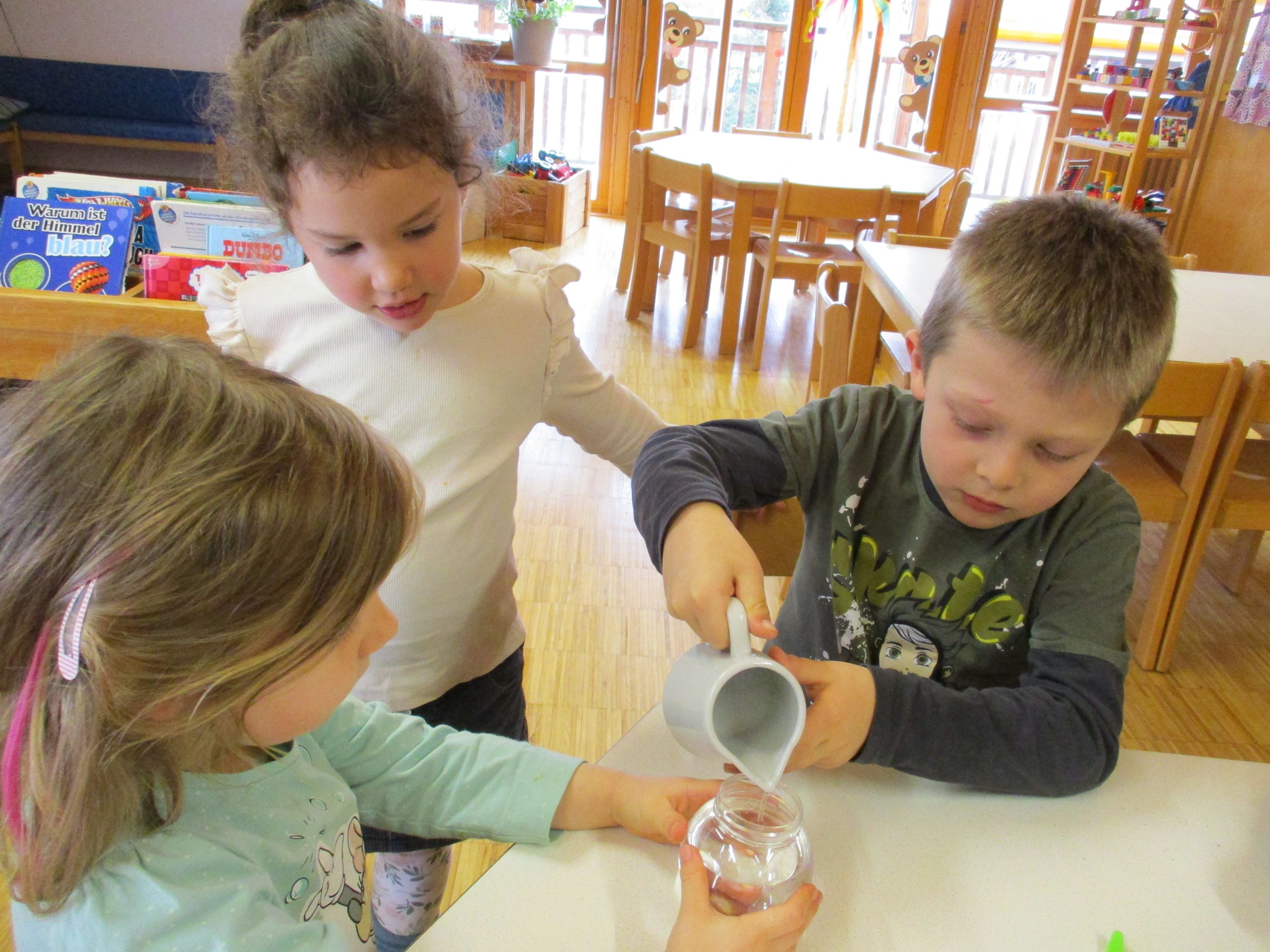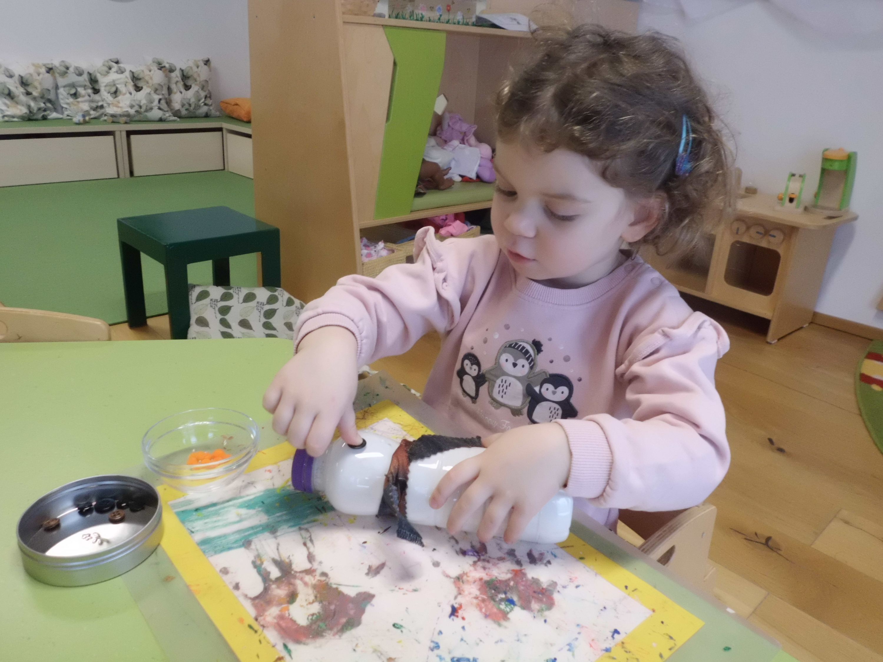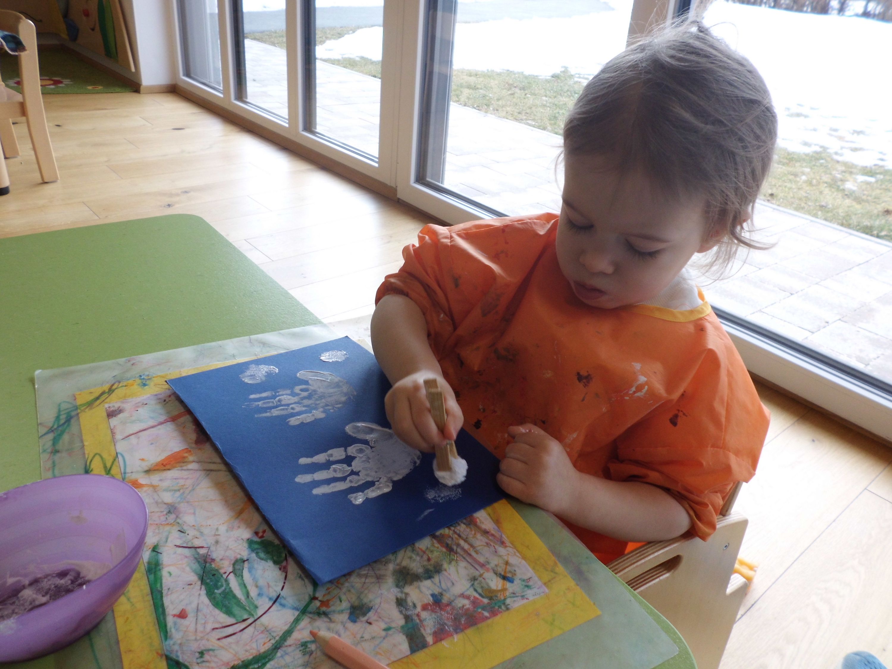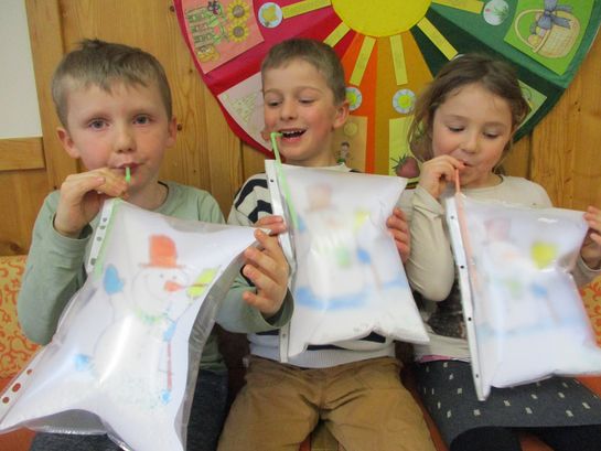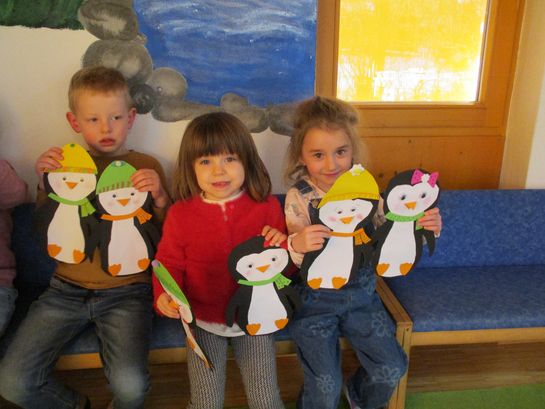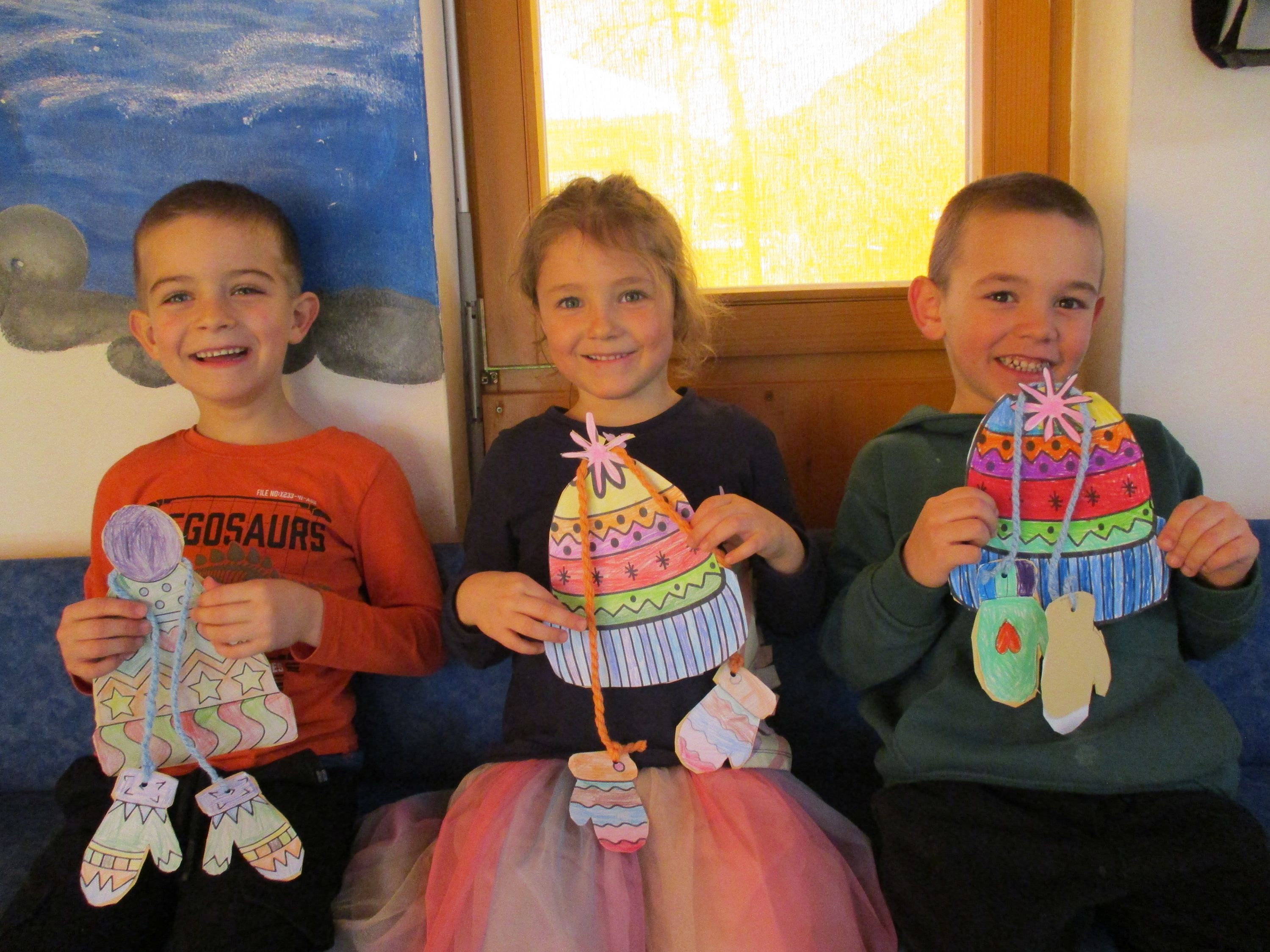 Dieser Interessensschwerpunkt sensibilisierte die Kinder für Wetterveränderungen, stärkte die Selbständigkeit beim Anziehen und förderte die Kreativität durch thematische Gestaltung.