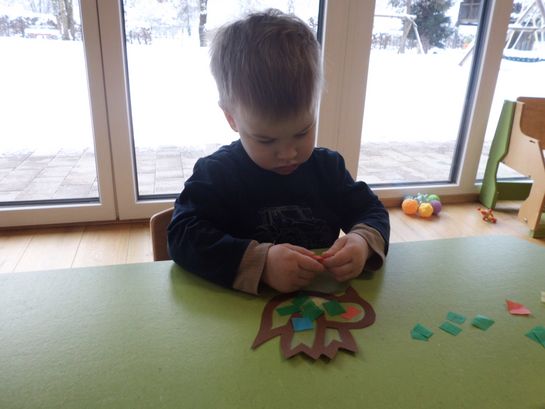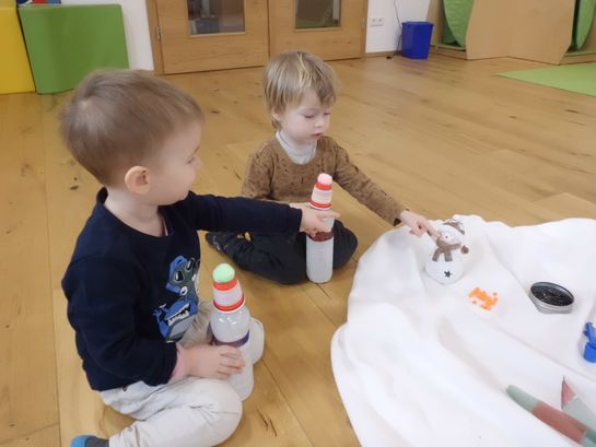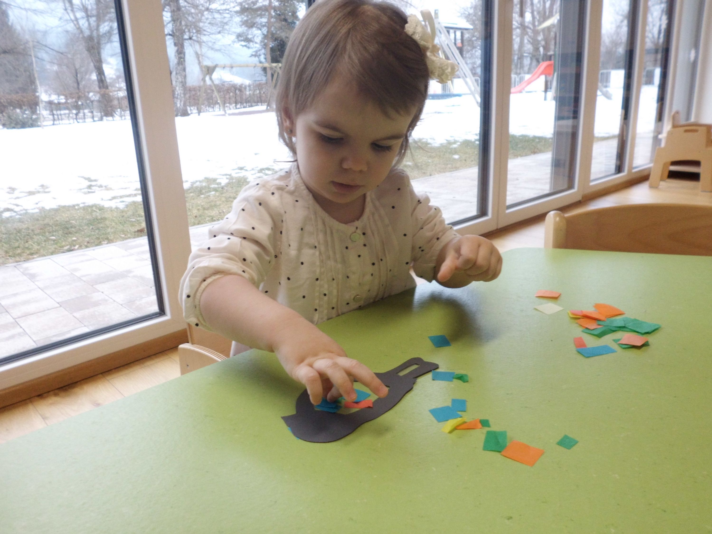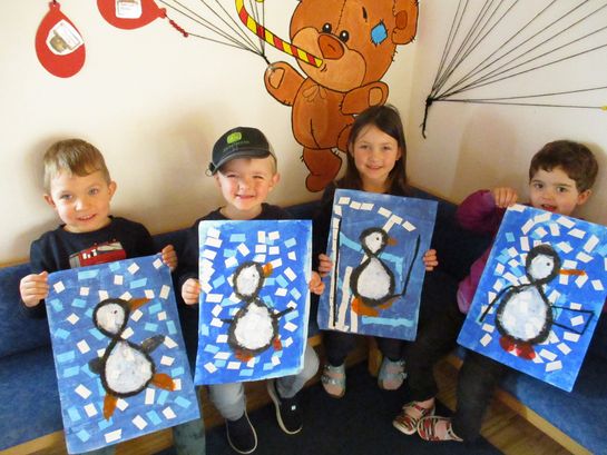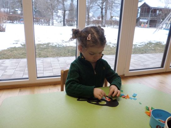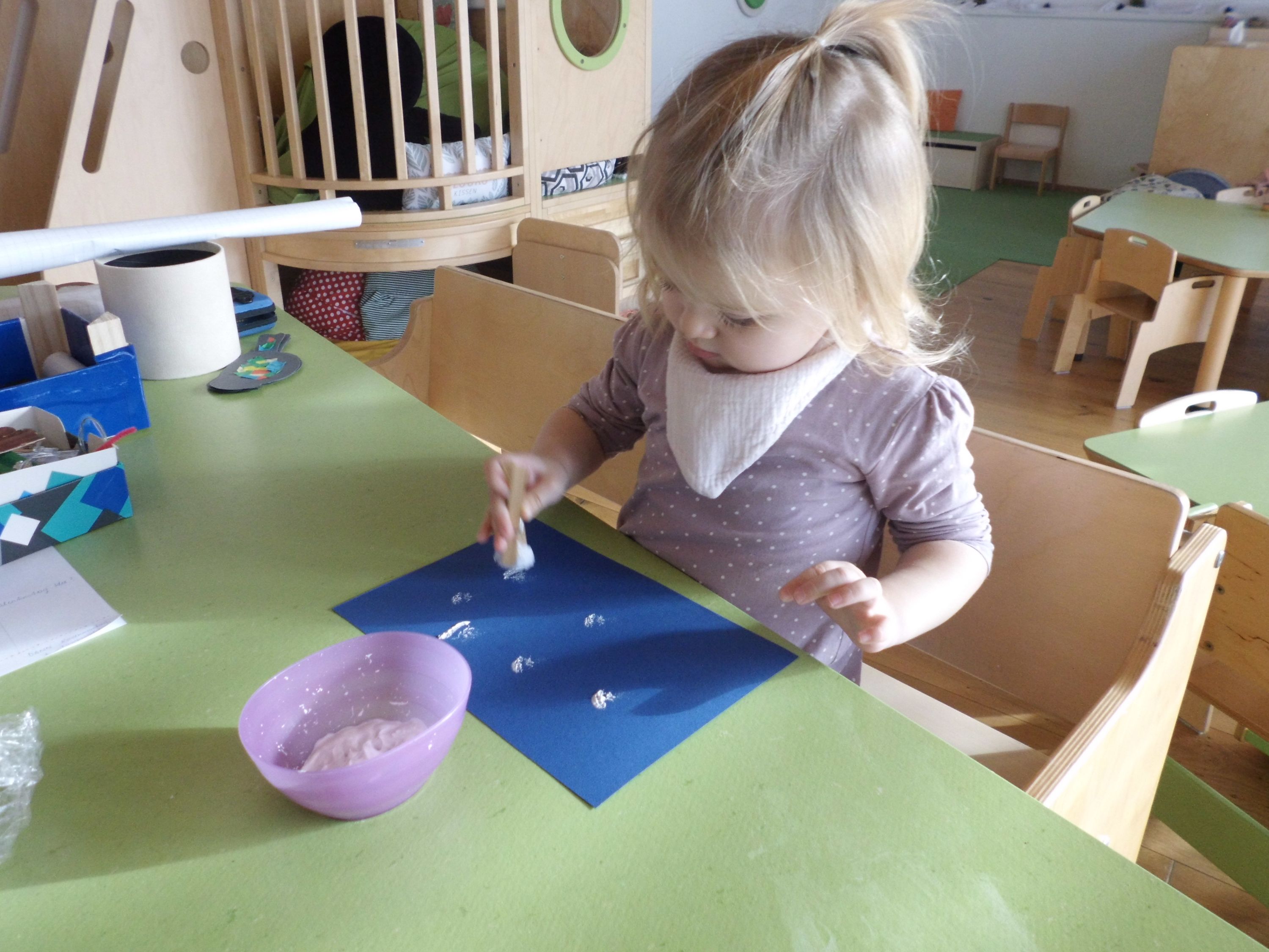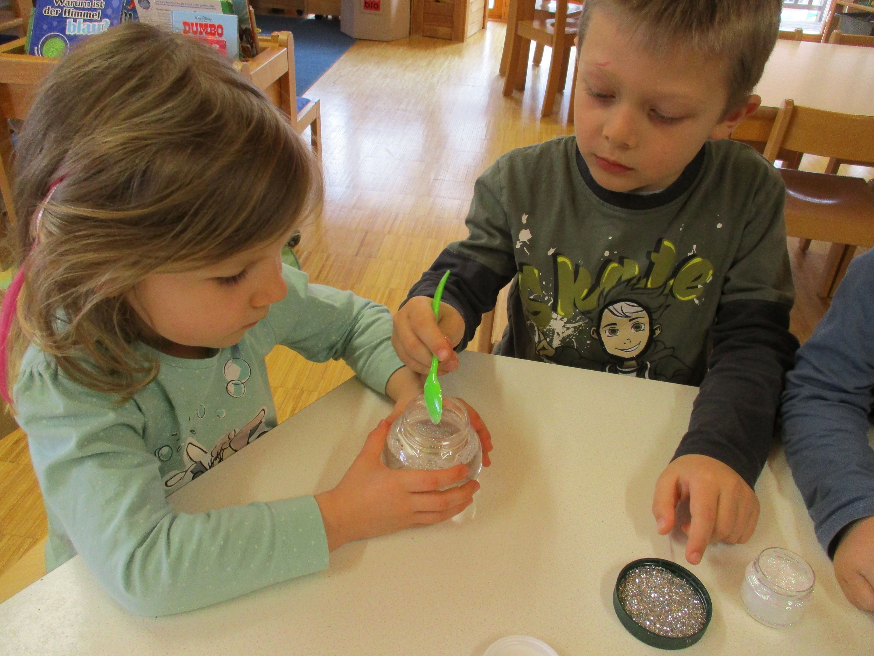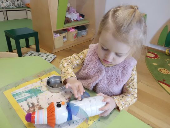 Dieser Interessensschwerpunkt sensibilisierte die Kinder für Wetterveränderungen, stärkte die Selbständigkeit beim Anziehen und förderte die Kreativität durch thematische Gestaltung.