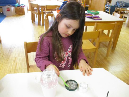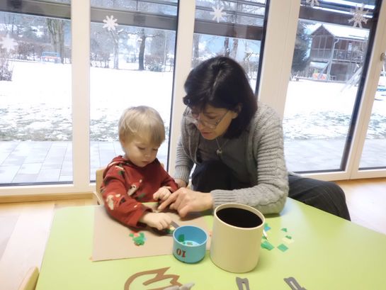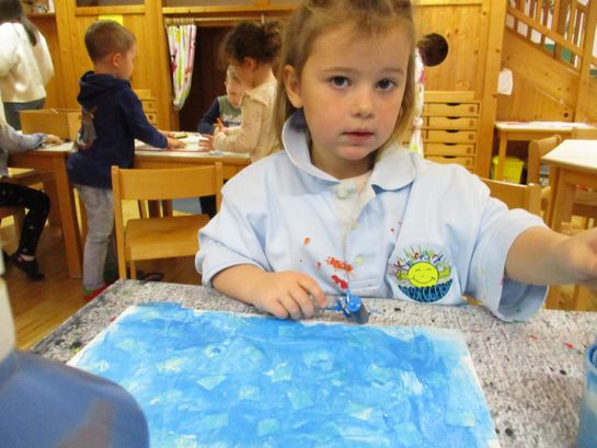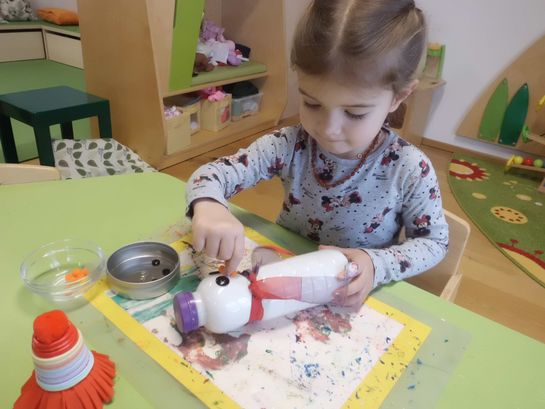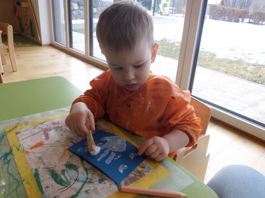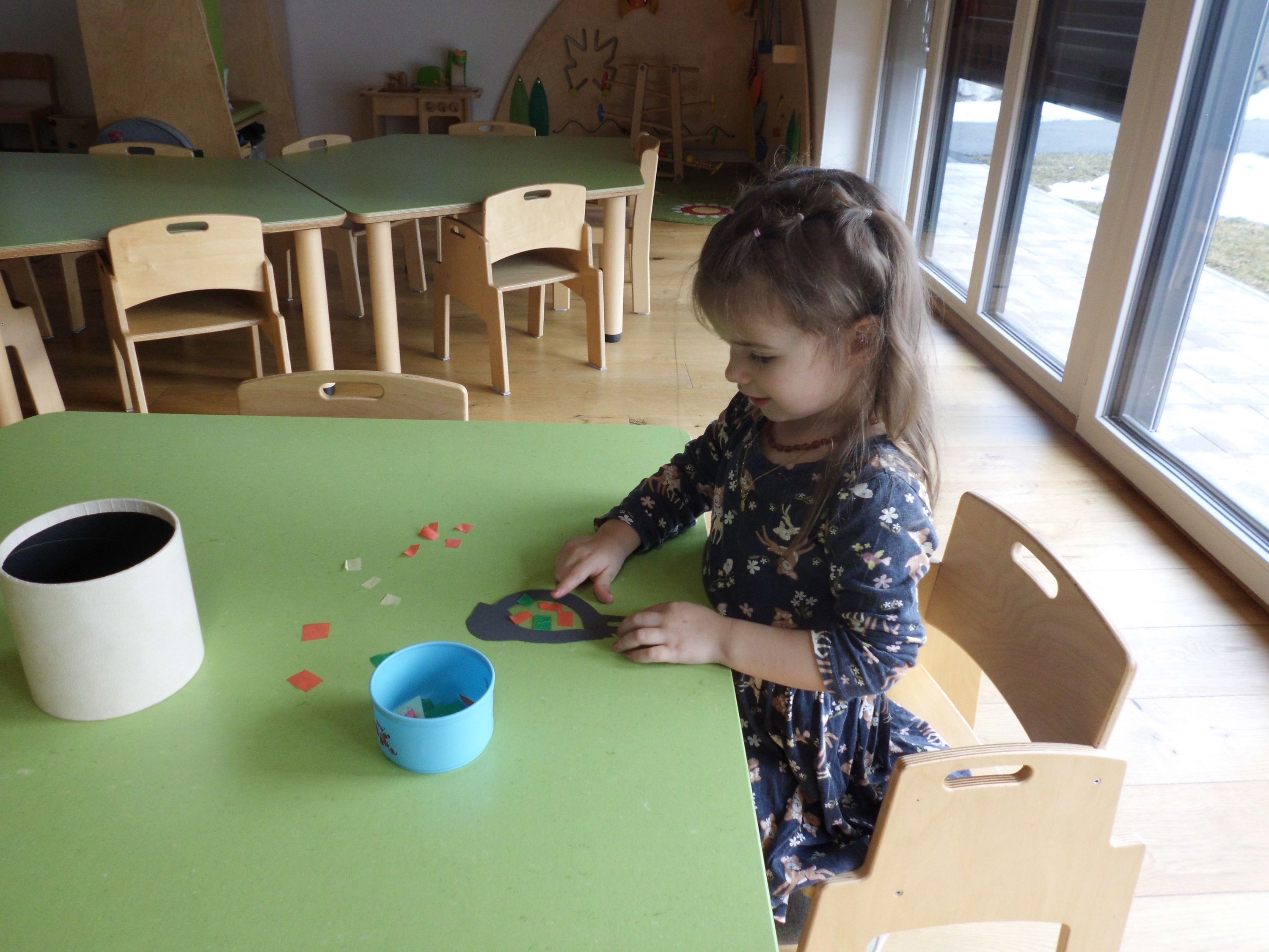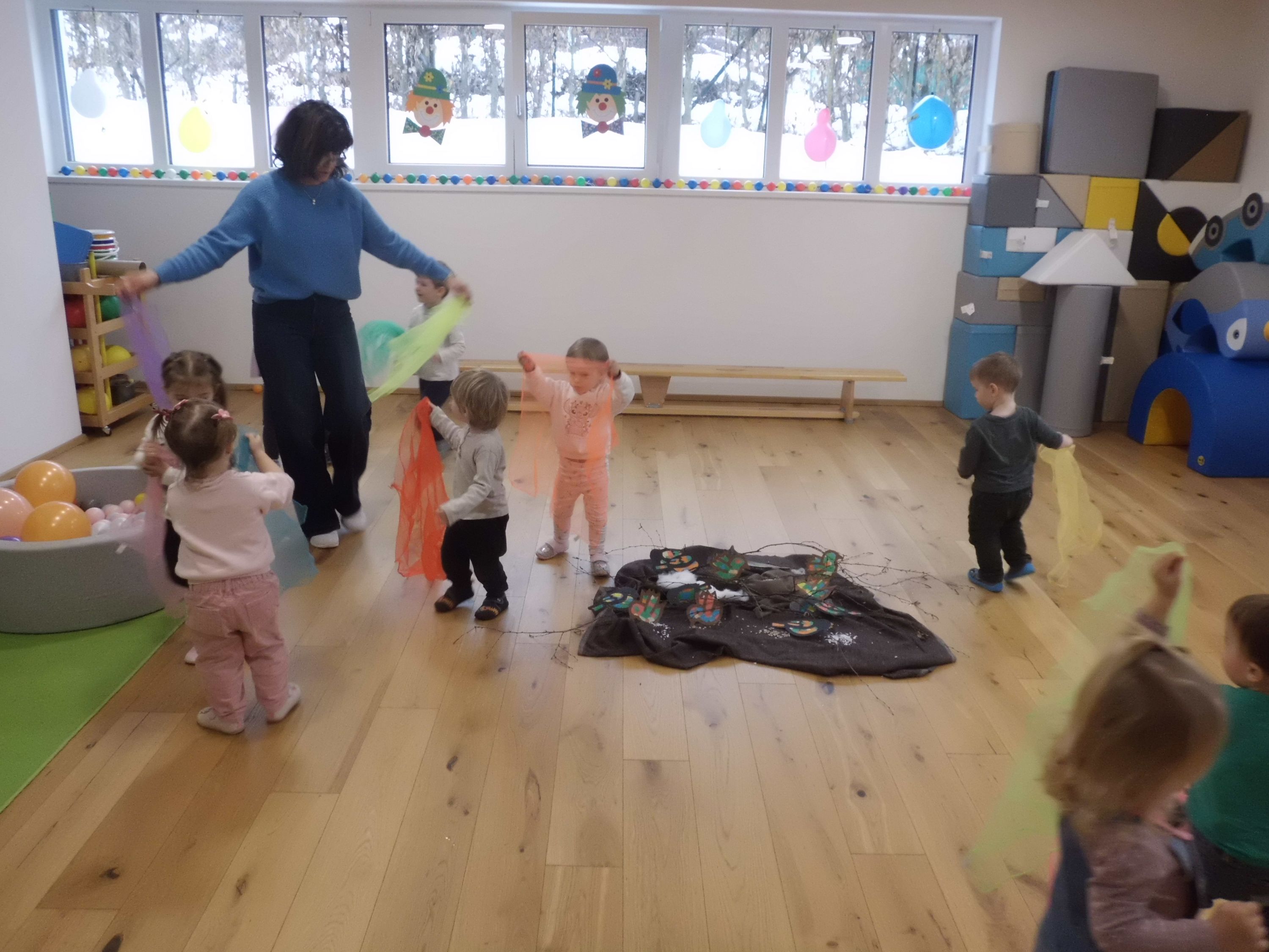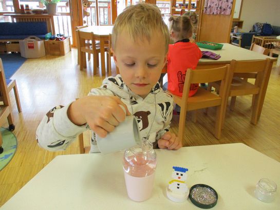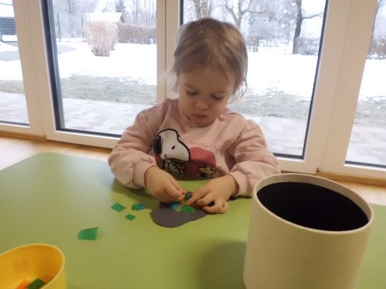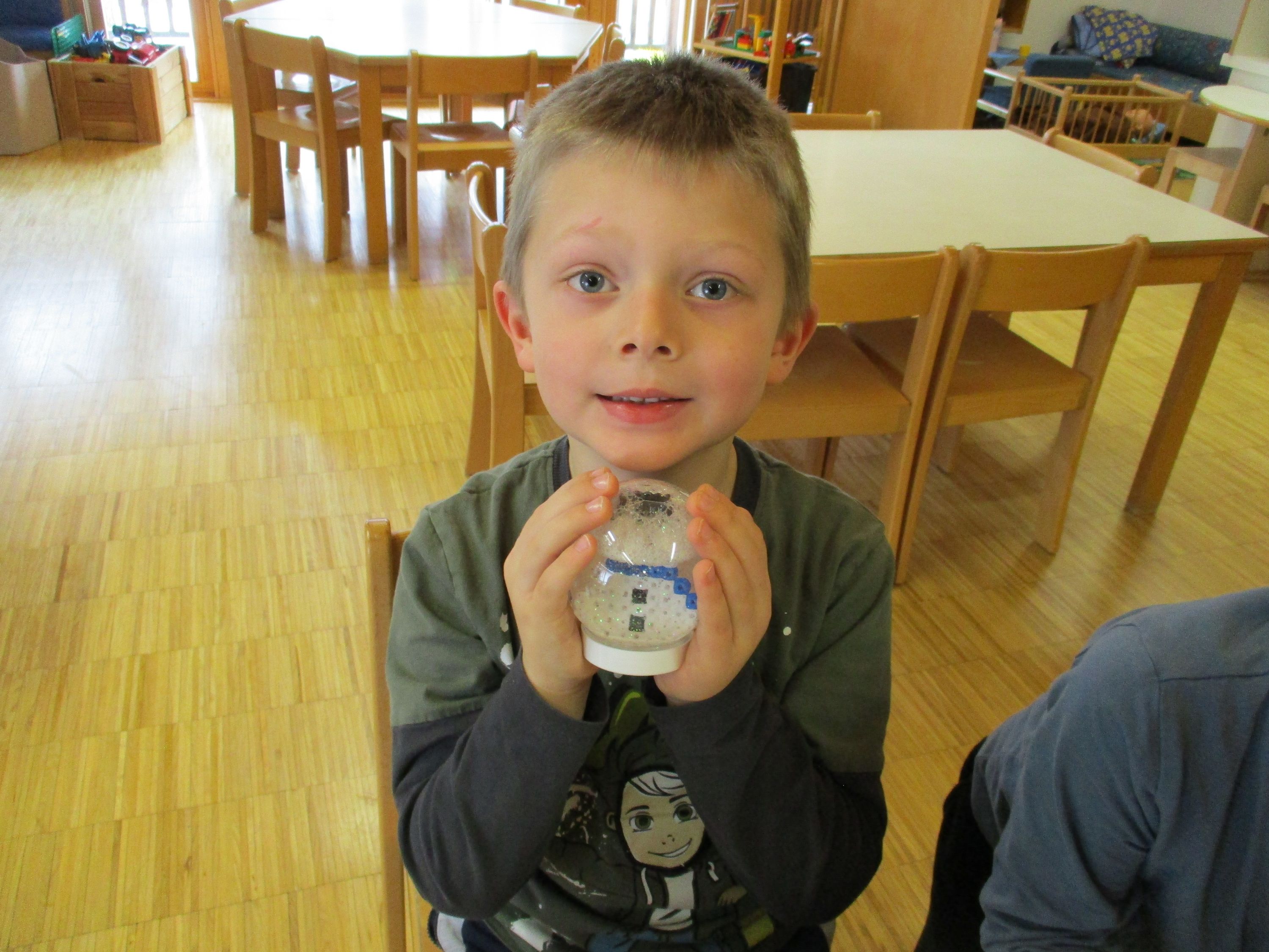 Dieser Interessensschwerpunkt sensibilisierte die Kinder für Wetterveränderungen, stärkte die Selbständigkeit beim Anziehen und förderte die Kreativität durch thematische Gestaltung.
