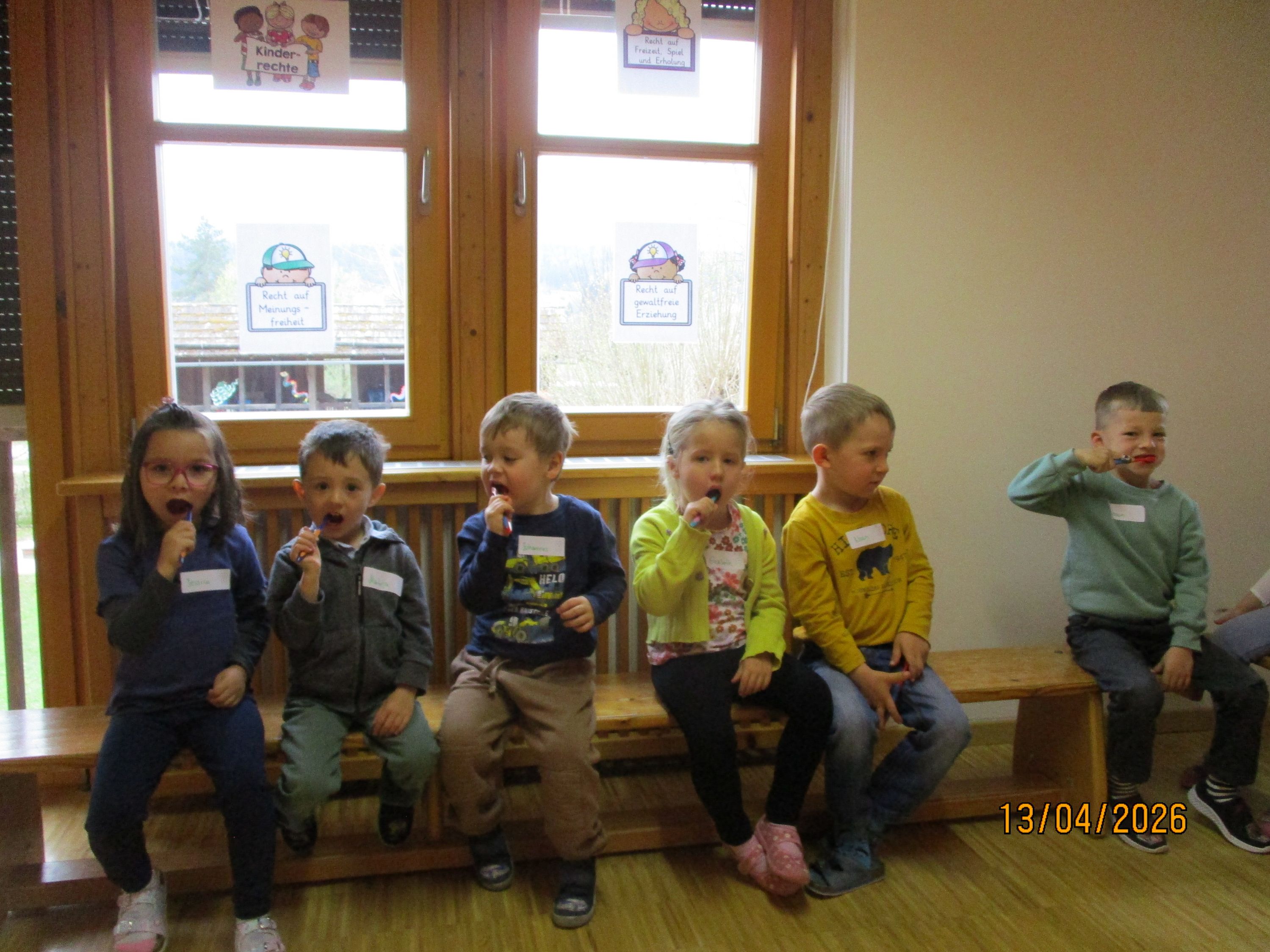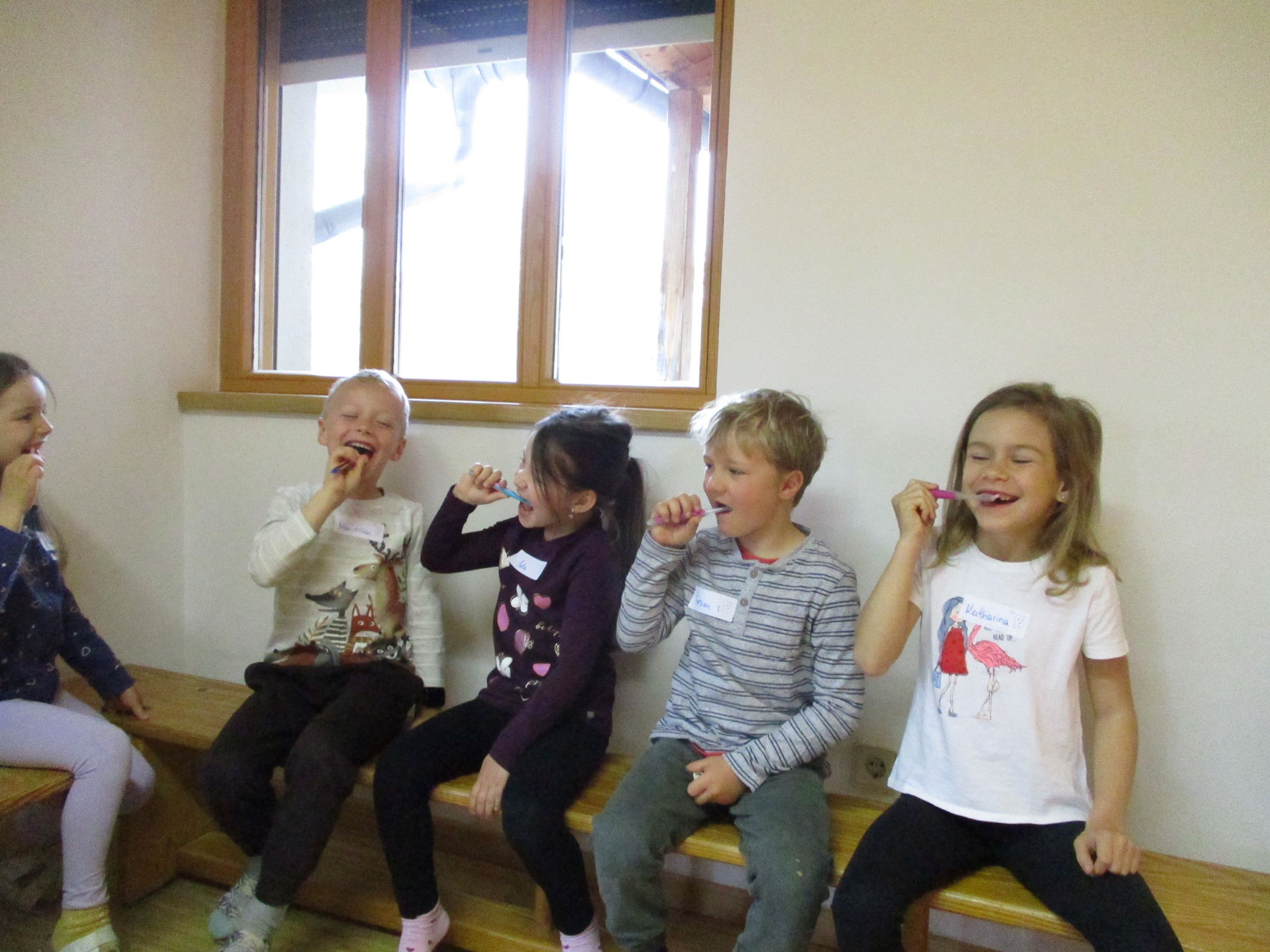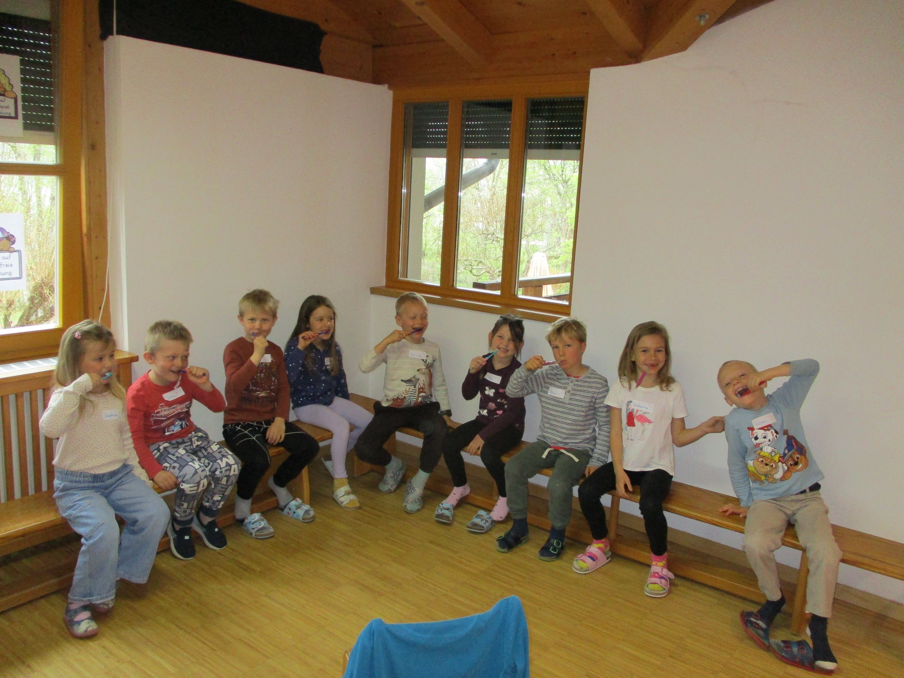 Spielerisch lernen die Kinder frühzeitig gesunde Gewohnheiten und die Bedeutung der Mundhygiene kennen, um Zahnproblemen vorzubeugen und die Zähne von Beginn an gesund zu erhalten.