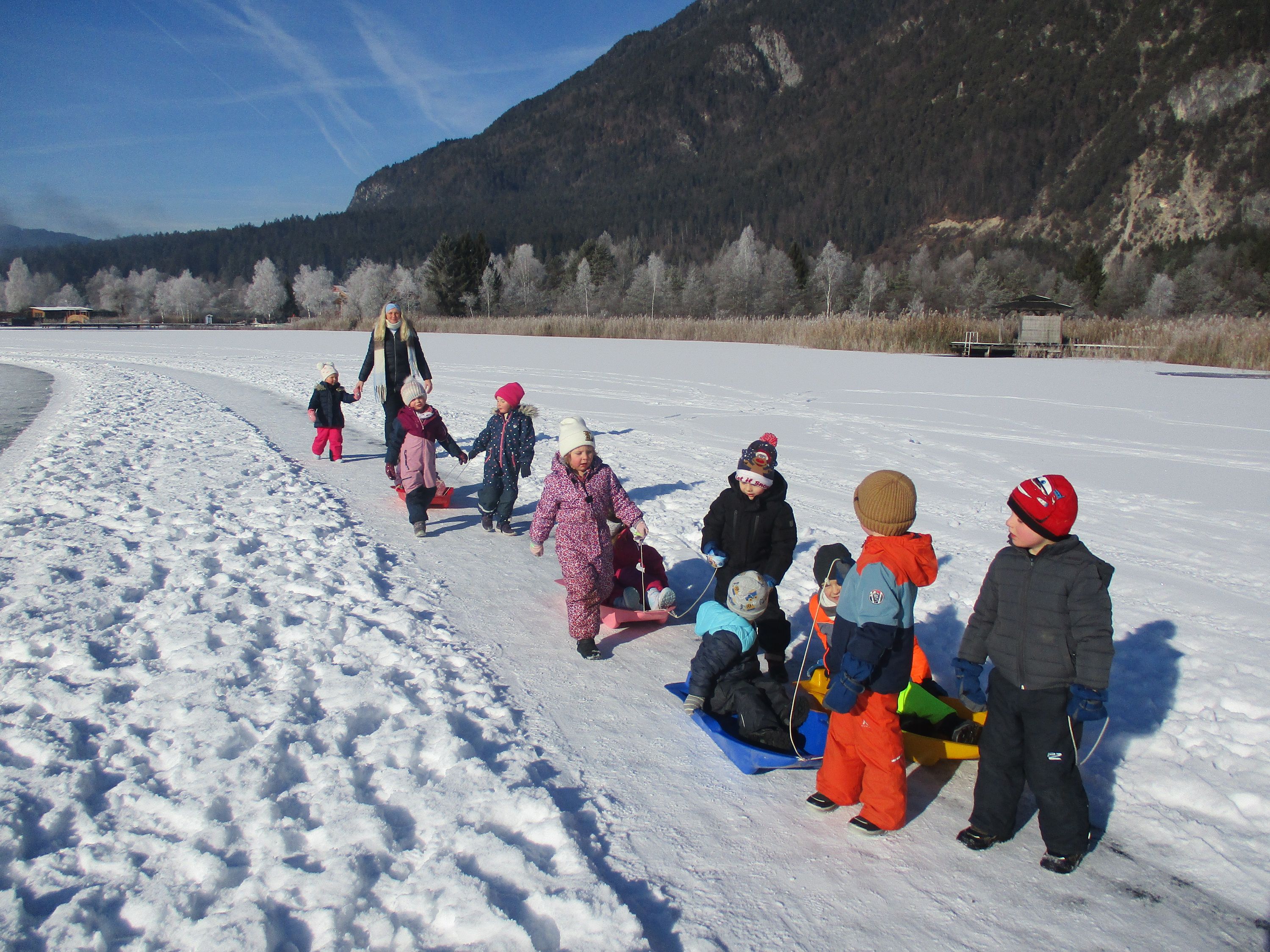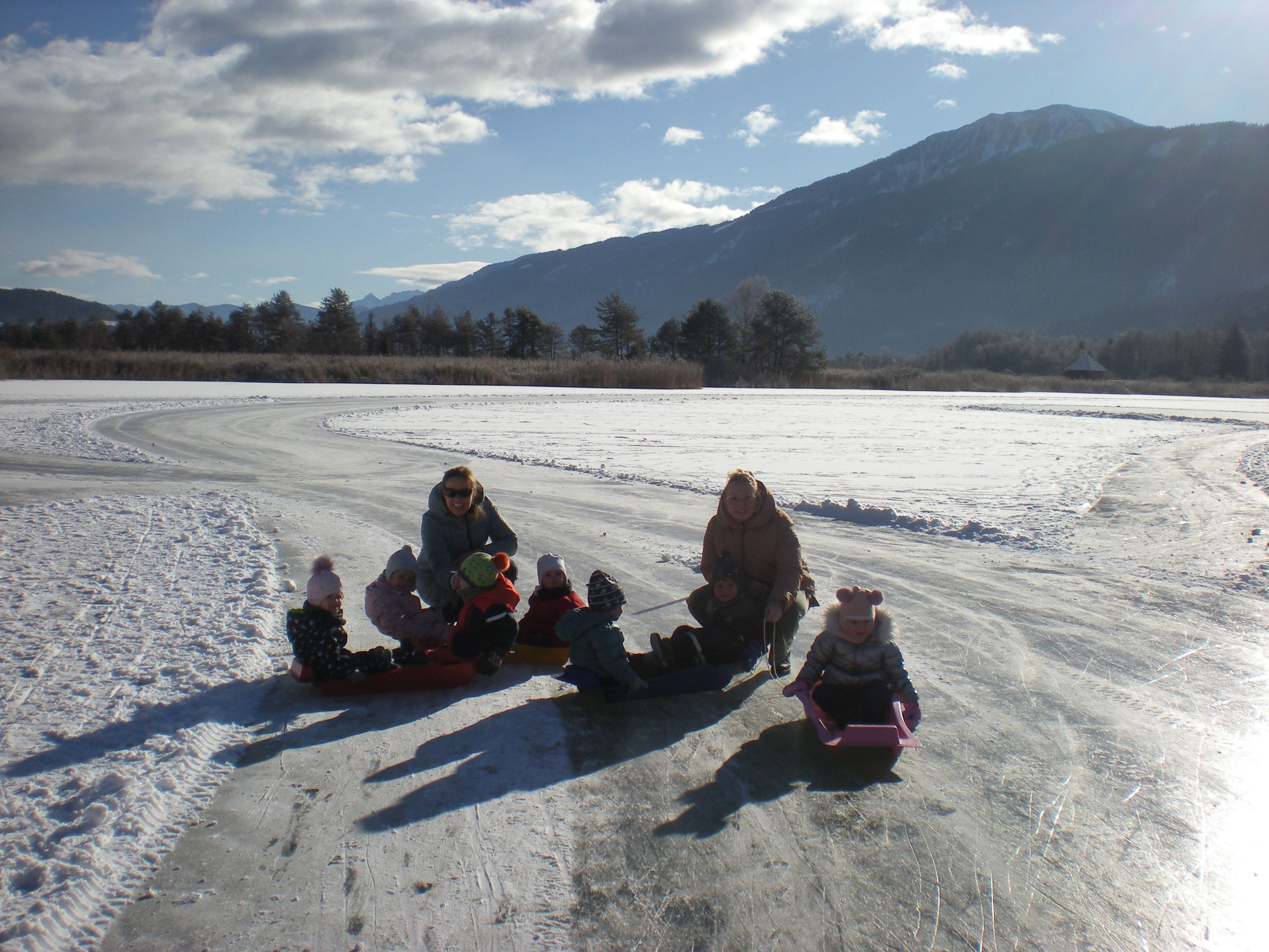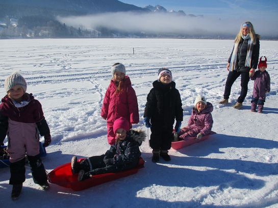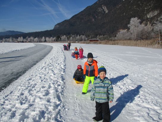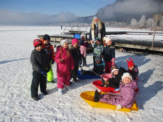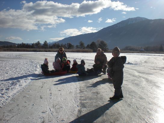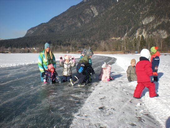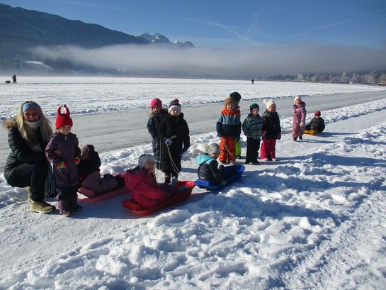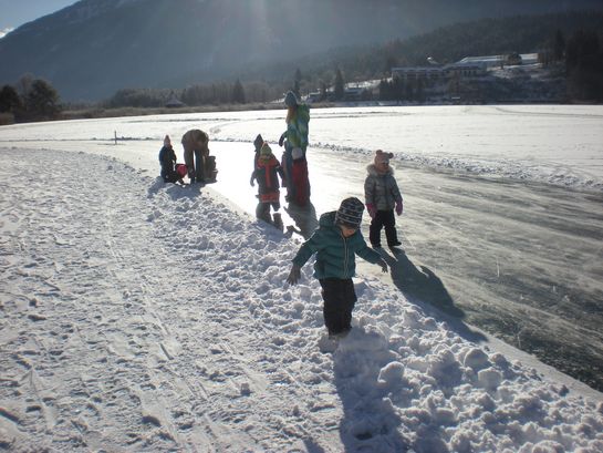 Mit den Bobs die freigegebene, zugefrorene Eisfläche zu betreten, gehört zu den beliebtesten Aktivitäten im Winter. Ganz nebenbei stärkten die Kinder ihr Immunsystem und den Kreislauf und schärften ihre Sinne.