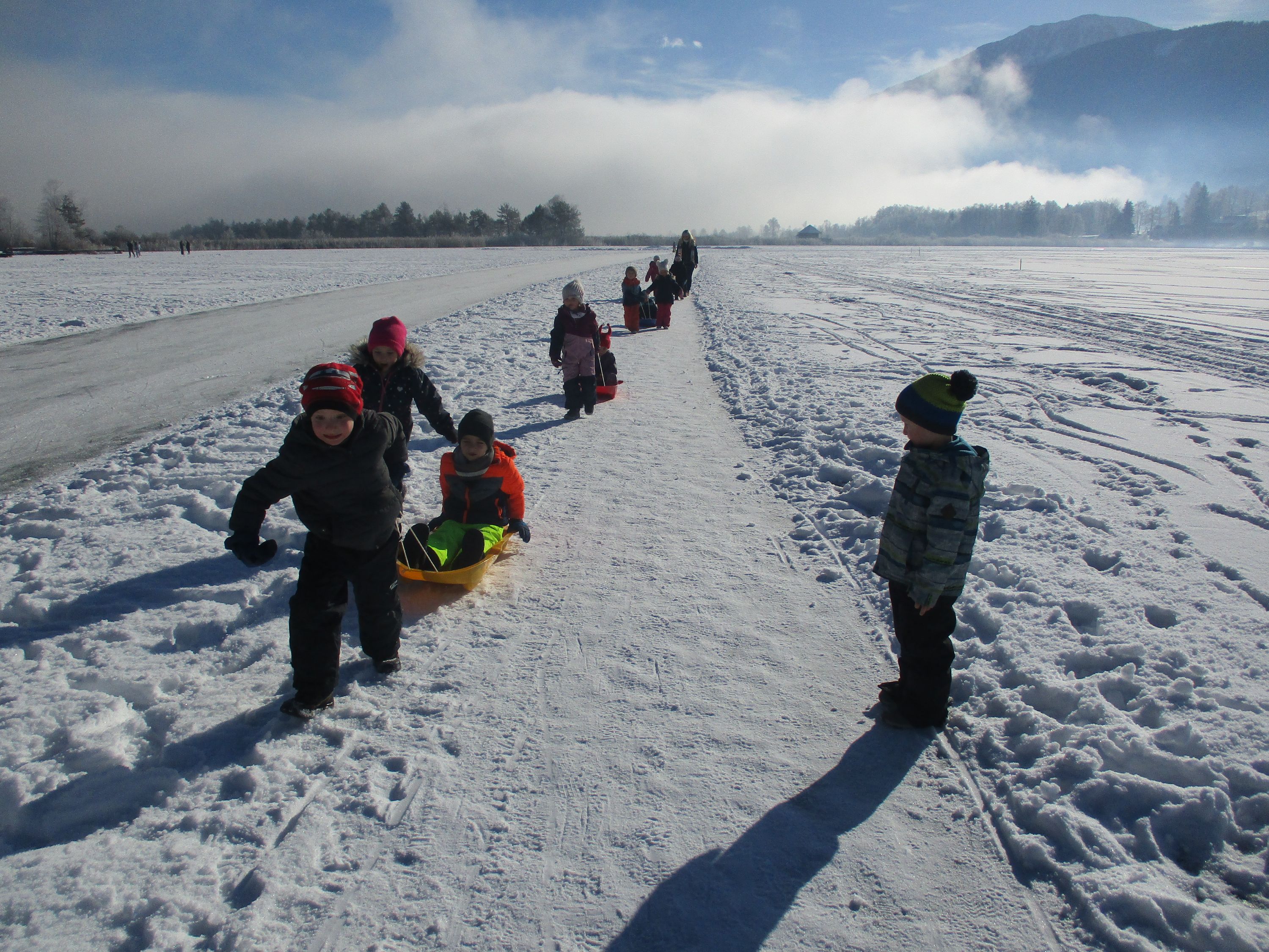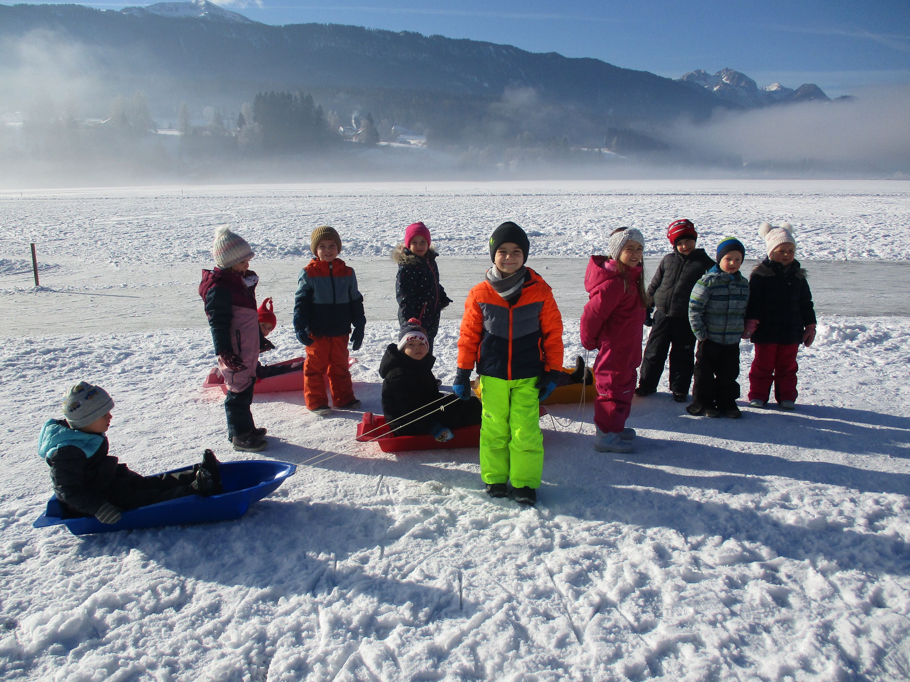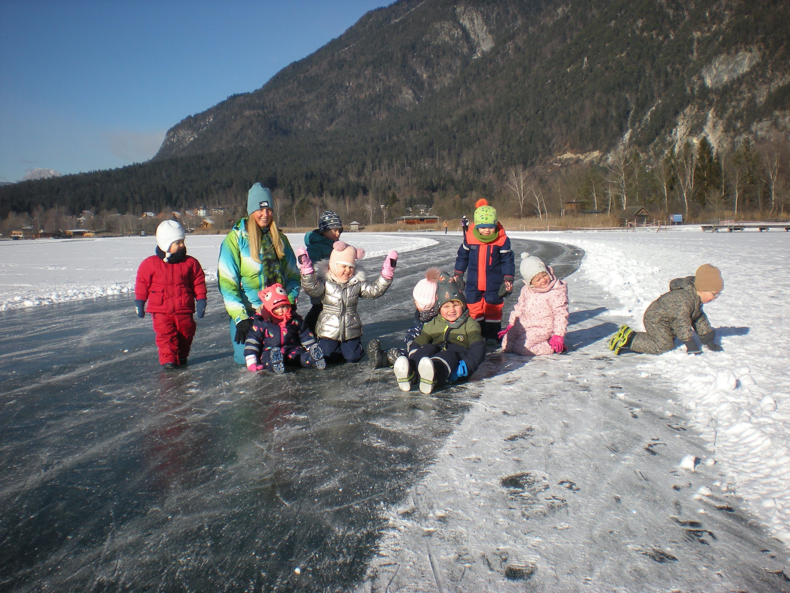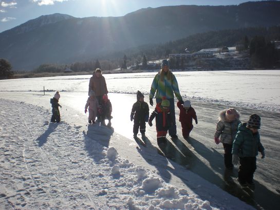 Mit den Bobs die freigegebene, zugefrorene Eisfläche zu betreten, gehört zu den beliebtesten Aktivitäten im Winter. Ganz nebenbei stärkten die Kinder ihr Immunsystem und den Kreislauf und schärften ihre Sinne.