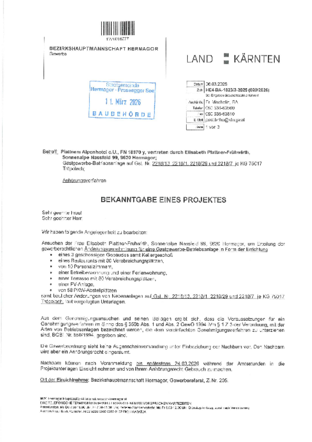 Bekanntgabe eines Projektes