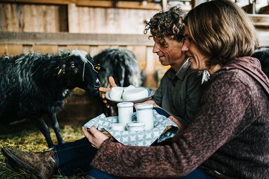 Am Bio-Hof von Ulrike Petschacher und Leopold Feichtinger ist das schwarze Schaf keine Ausnahme. Hier wird die alte Haustierrasse „Krainer Steinschaf“ von Hand gemolken und die aromatische Milch in der hofeigenen Käserei verarbeitet.
