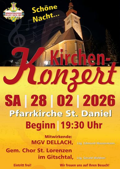 So lautet das Motto des traditionellen Kirchenkonzertes des MGV Dellach, das heuer am 28. Februar in der Pfarrkirche St. Daniel stattfinden wird.