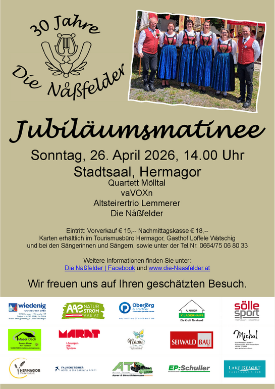 Wenn Ihre Veranstaltung auf unserer Homepage erscheinen soll, bitten wir Sie, uns ein E-Mail an gaby.zerza@hermagor.at zu senden. Senden Sie bitte folgende Informationen mit - ansonsten kann die Veranstaltung nicht erstellt werden: Titel der Veranstaltung, Datum mit Uhrzeit, Infotext und ein Foto.