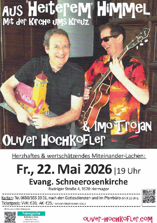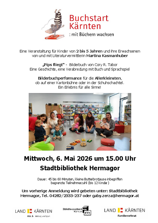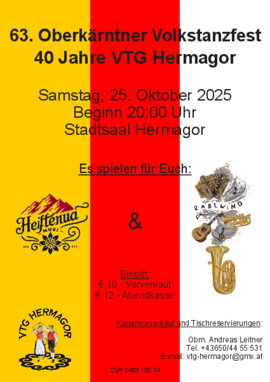 Wenn Ihre Veranstaltung auf unserer Homepage erscheinen soll, bitten wir Sie, uns ein E-Mail an gaby.zerza@hermagor.at zu senden. Senden Sie bitte folgende Informationen mit - ansonsten kann die Veranstaltung nicht erstellt werden: Titel der Veranstaltung, Datum mit Uhrzeit, Infotext und ein Foto.