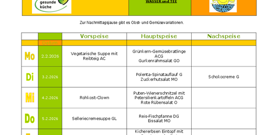 Die Speisenfolge vom 2.2. - 6.2.2026!