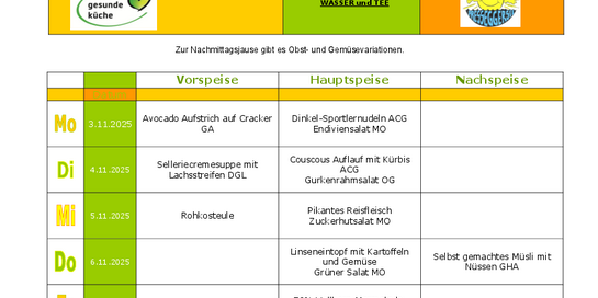 Die Speisenfolge vom 3.11. - 7.11.2025!