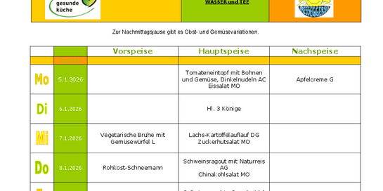 Die Speisenfolge vom 5.1. - 9.1.2026!