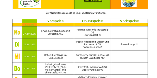 Die Speisenfolge vom 27.10. - 31.10.2025!