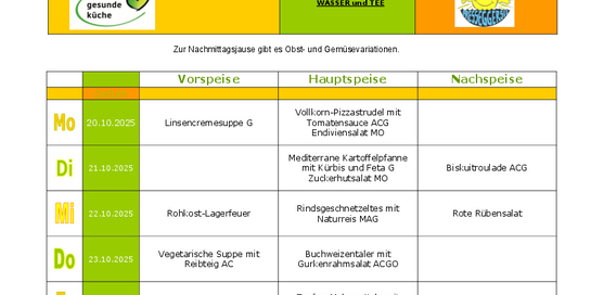 Die Speisenfolge vom 20.10. - 24.10.2025!