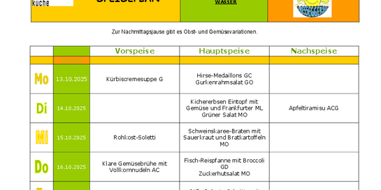 Die Speisenfolge vom 13.10. - 17.10.2025!