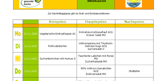 Die Speisenfolge vom 3.11. - 7.11.2025!